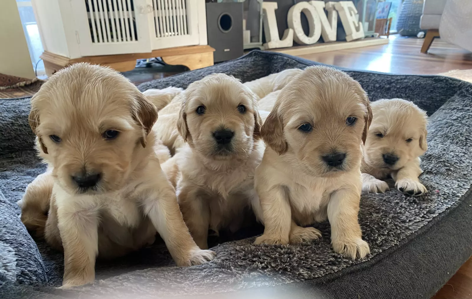 Honeys litter was born on 4/8/23 and are ready for their forever homes on 2/10! They are raised lovingly in our home with their Mum Honey and big sister Roxy from Honeys first litter and our Burmese cat Max! They are well socialised and cuddled every day by our family and friends who love puppy visits! We are more popular than ever!!! We have 5 boys and 1 girl available! All are healthy , happy puppies who will