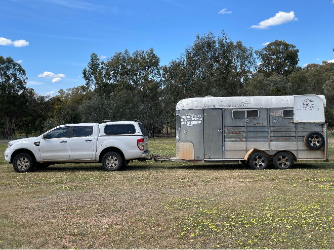 Project Float - Millsy's triple, angle float registered till mid October 2025, Duel axle, water tank and cupboard/stage in the front. Rug rack and swing out Tack Box. Needs work but was still being used till a month ago when we sold the last of our horses.