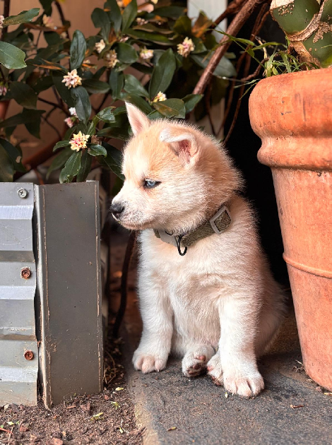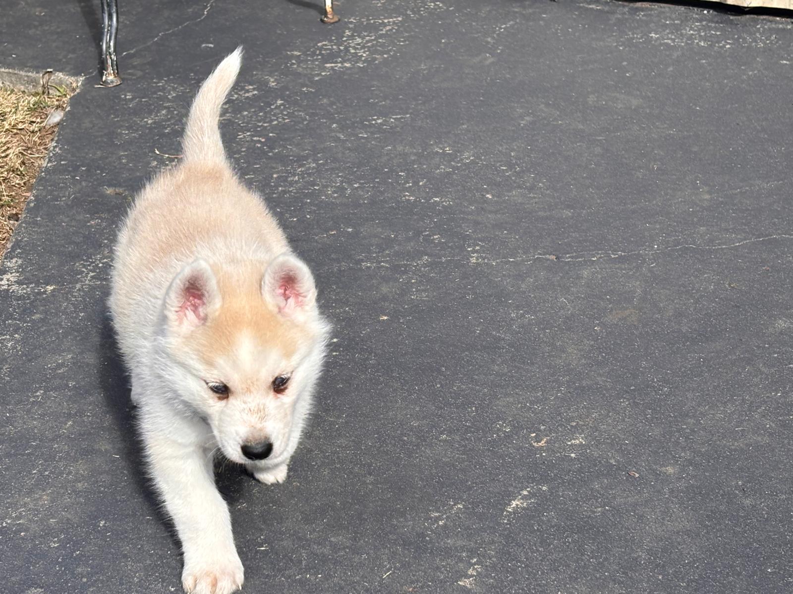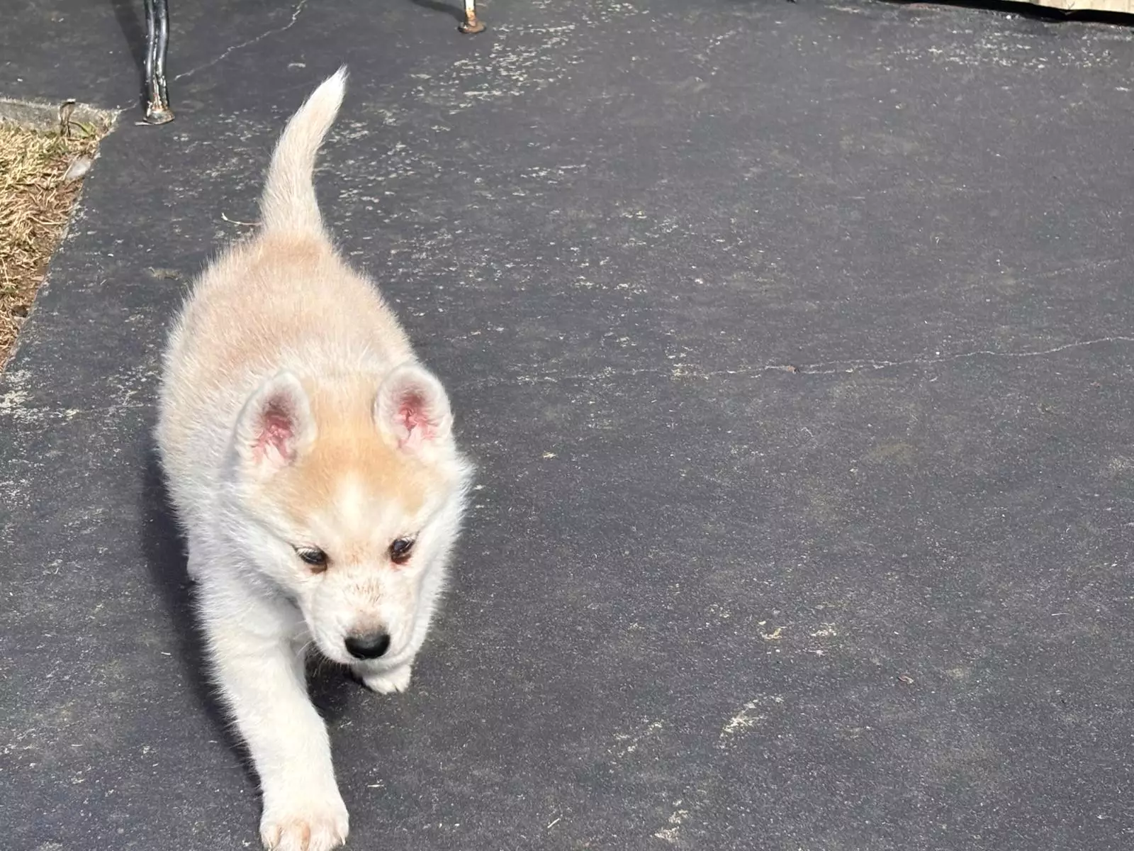 3 Siberian Huskies – 2 boys red/white colour, girl white colour. All have blue eyes. Currently 6 weeks old, available for sale after 8 weeks old.