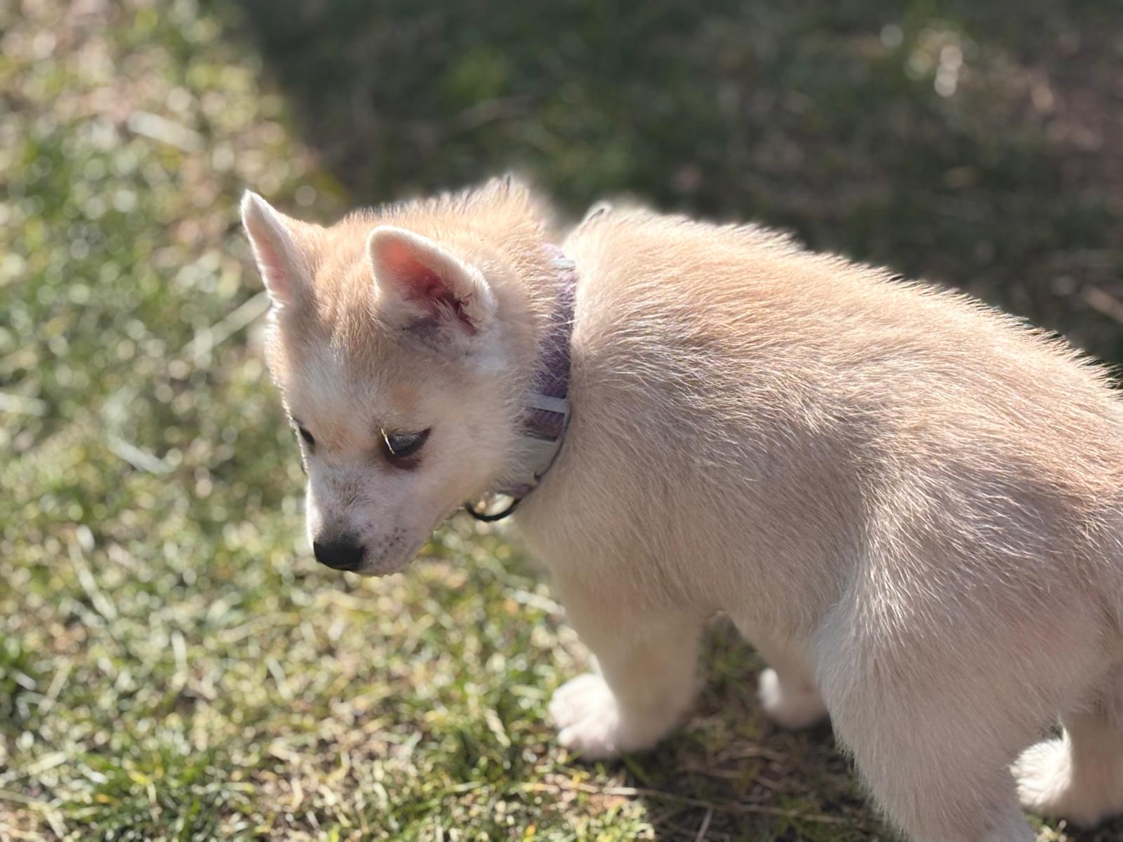 Love to play outside and have lots of cuddle. Boy green, loves to talk. Boy blue loves to sleep on people and is the biggest of them all. Purple girl, loves to play with the ball and sleep a lot. Dogs are inside for sleep but love to play outside on the grass with their toys. Great with people and shoelaces too.