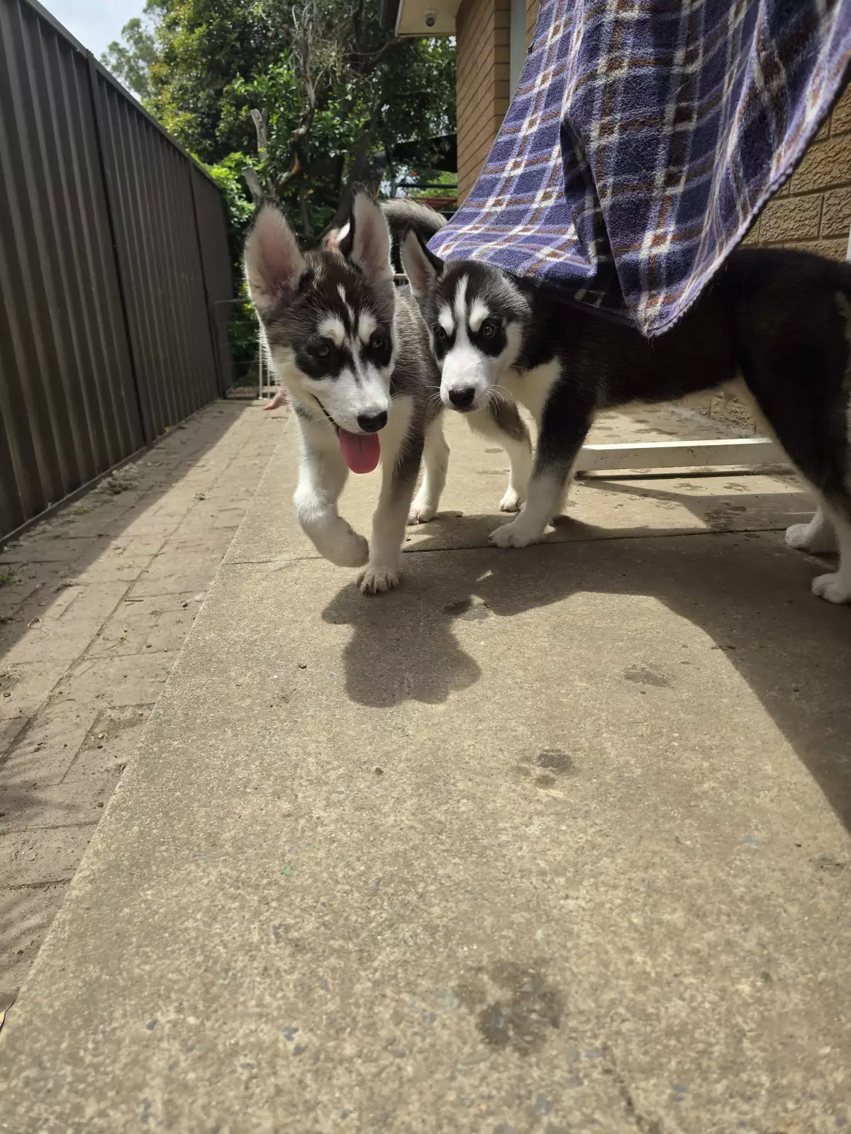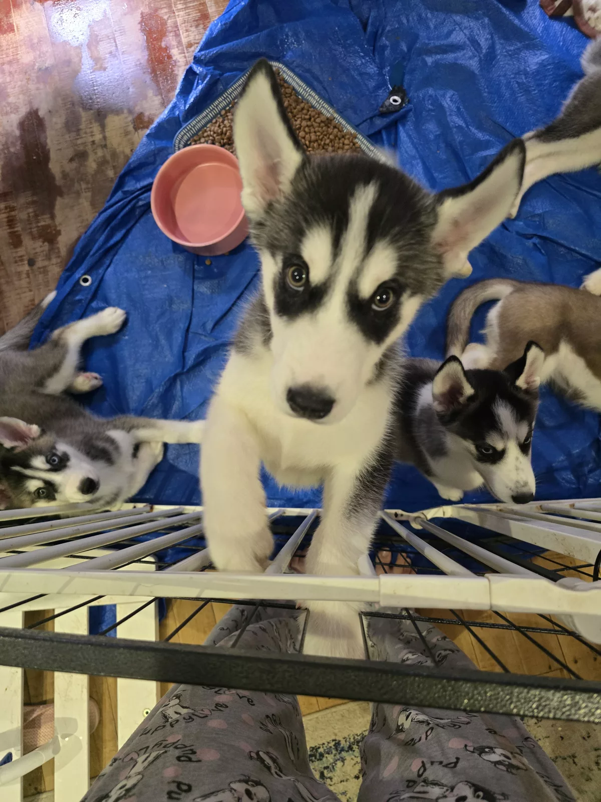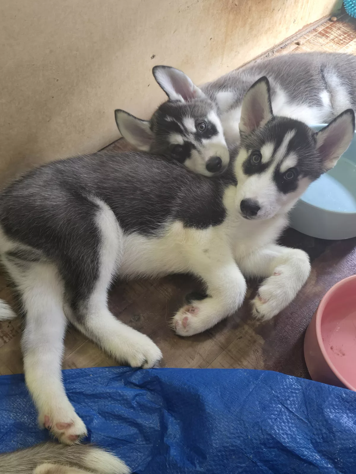 Huskies came from a litter of 6 from their black and white father and brown and white mother.