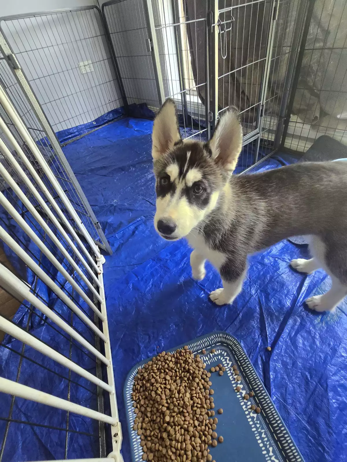 Dogs have access to: warm bedding, water at all times, ample space to exercise, natural light