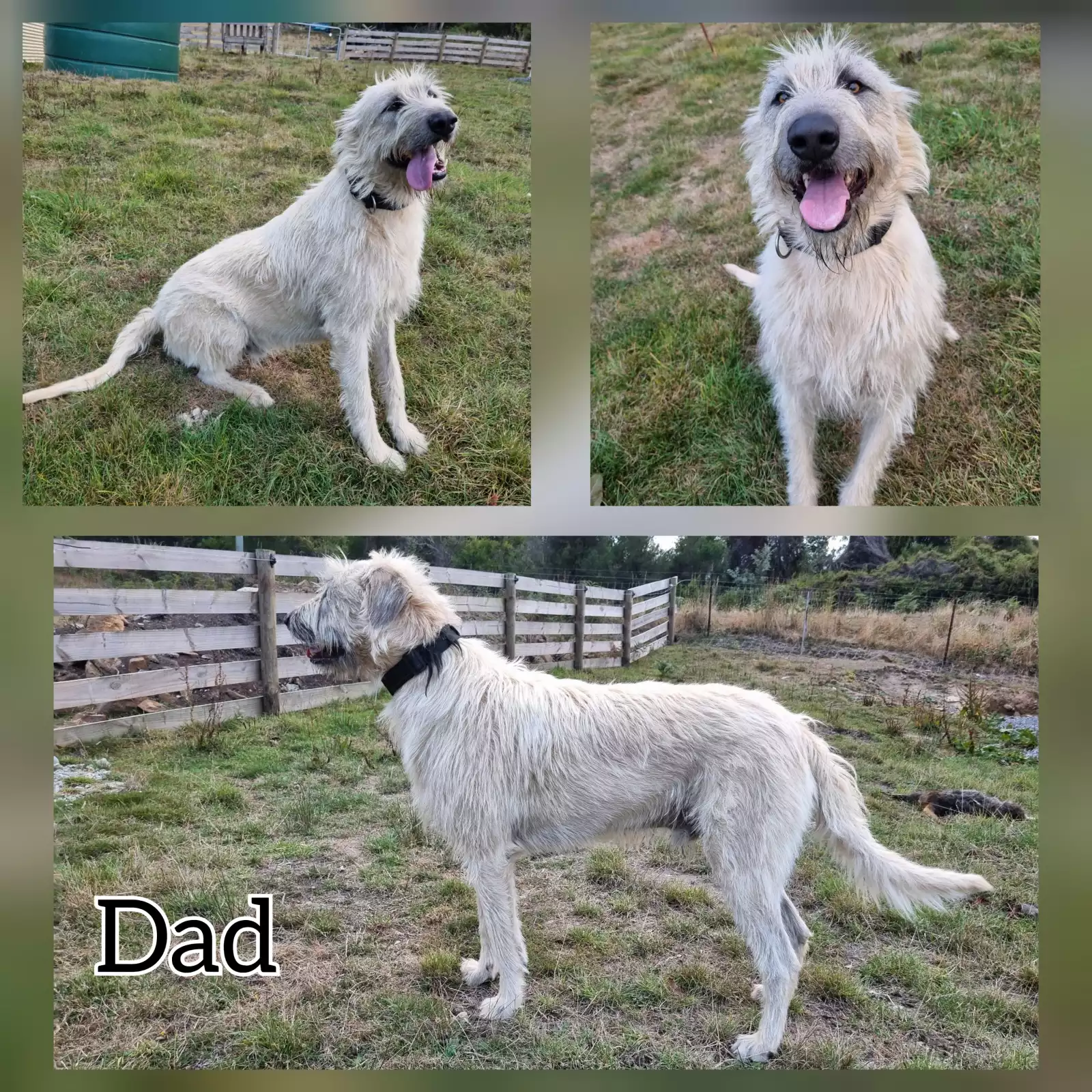 I have 4 pure bred Irish Wolfhound puppies for sale (3 female, 1 male). Puppies were born on 24/03/2025. They will be ready to go to their new homes at 8 weeks old (19/05/2025). Puppies will be microchipped, vaccinated, and wormed. Both parents have had the Orivet Irish Wolfhound Full Breed Profile test done (includes testing for breed-specific genetic disease) and both came back clear. Puppies and parents are available for viewing. The mum is very gentle and soft natured, while the dad is more playful and loves people. Irish Wolfhounds are very easygoing, loving dogs, with a strong desire for human companionship. Note: I will not place a puppy on hold without a deposit. Feel free to contact me if you have any questions or enquiries, and I will get back to you as soon as possible.