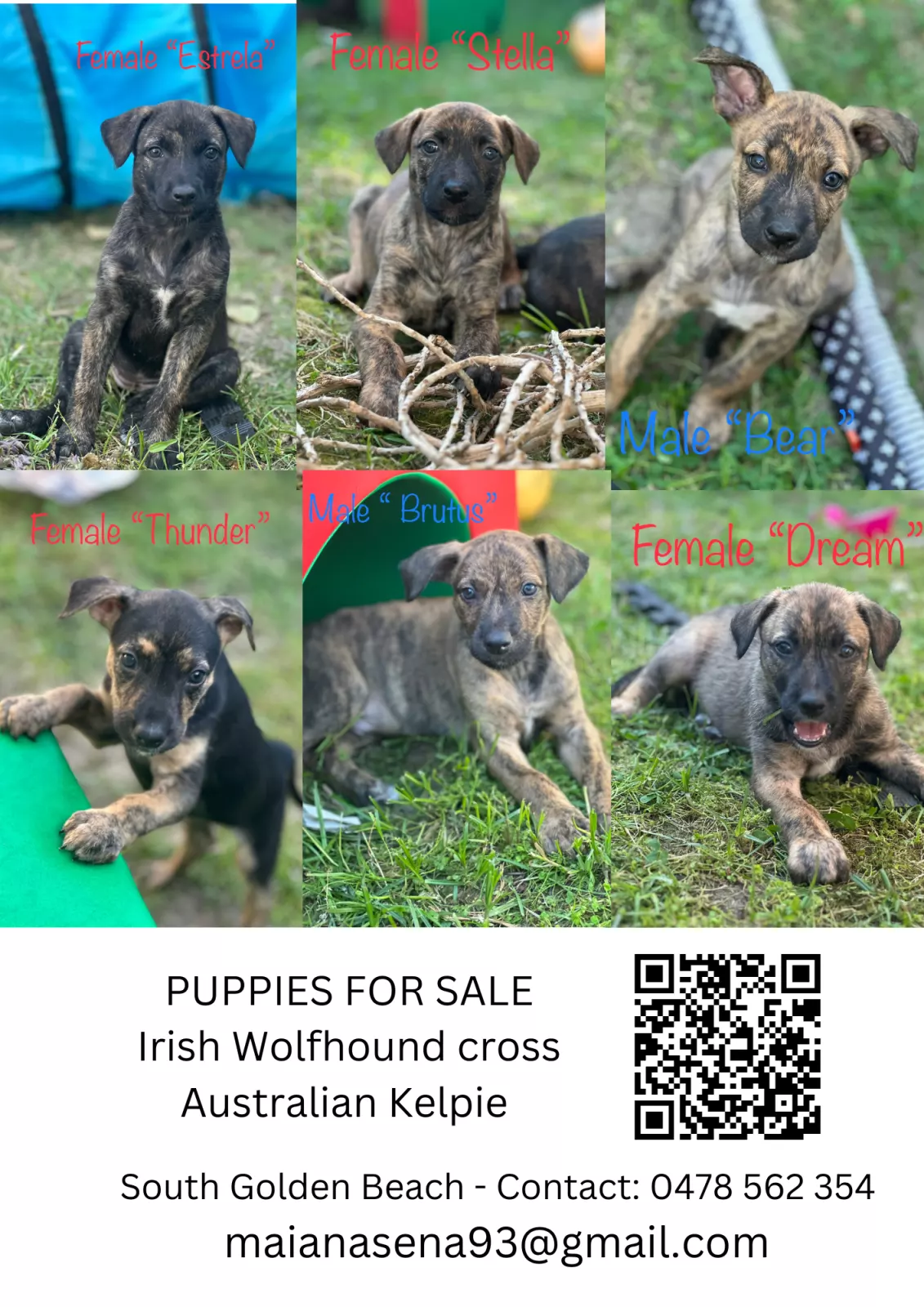 First litter of Kelpies and Irish Wolfhound. These stunning puppies make the perfect companion and with wonderful qualities and characteristics.