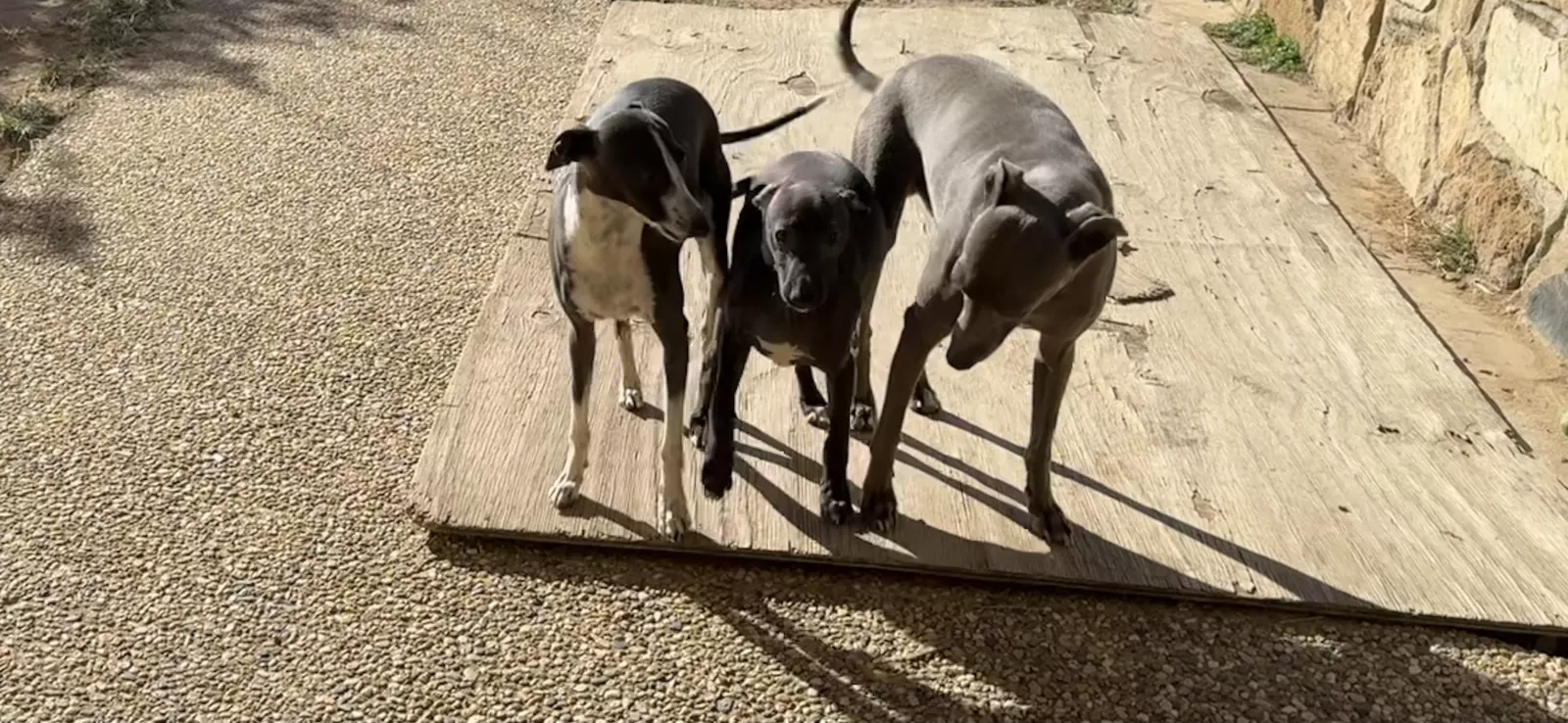 Dogs have access to: warm bedding, water at all times, ample space to exercise, natural light