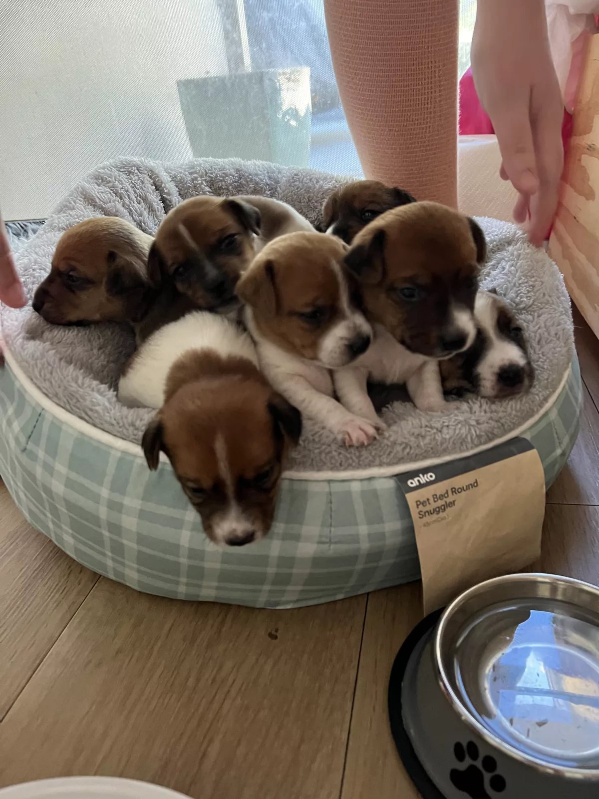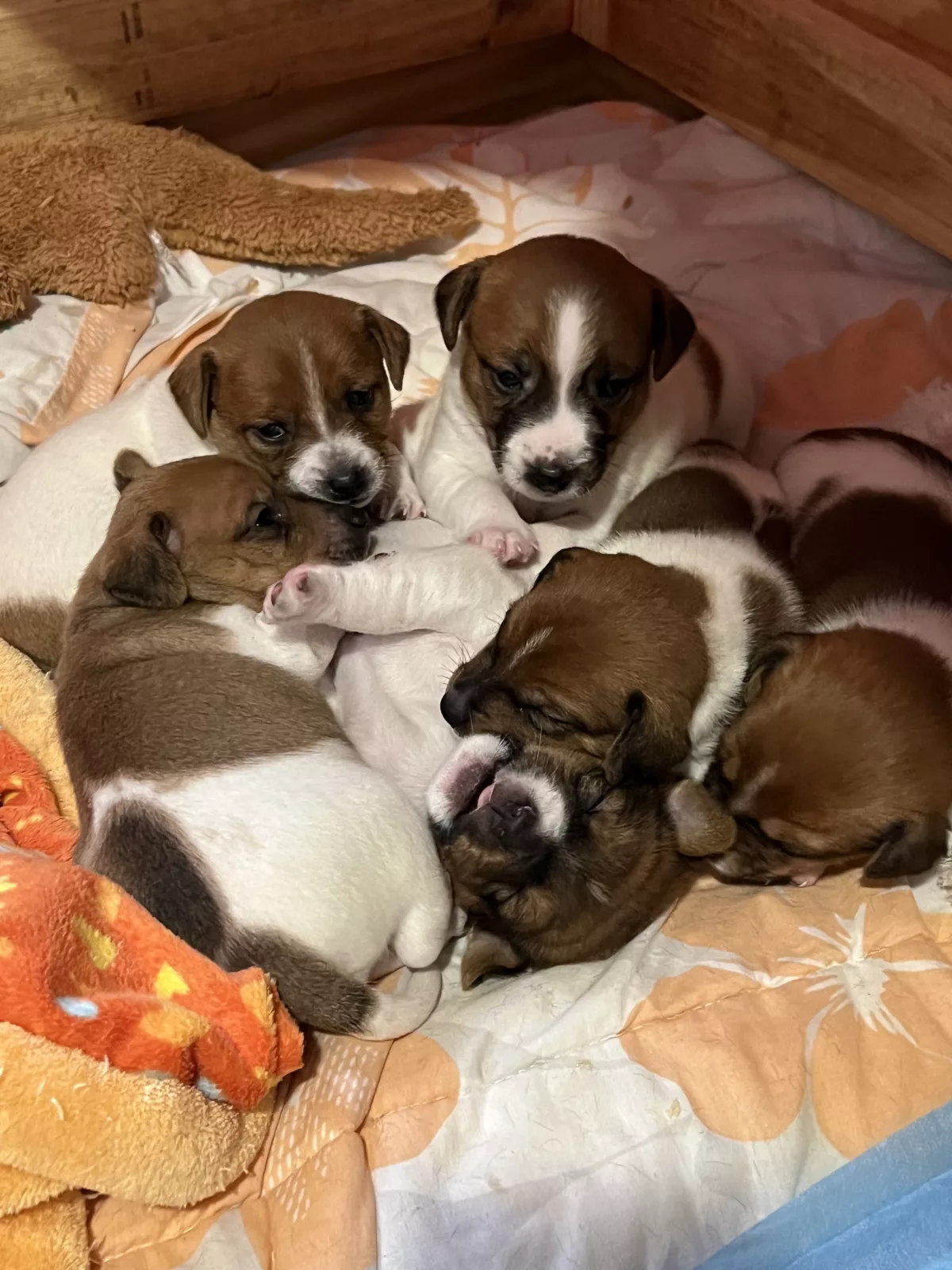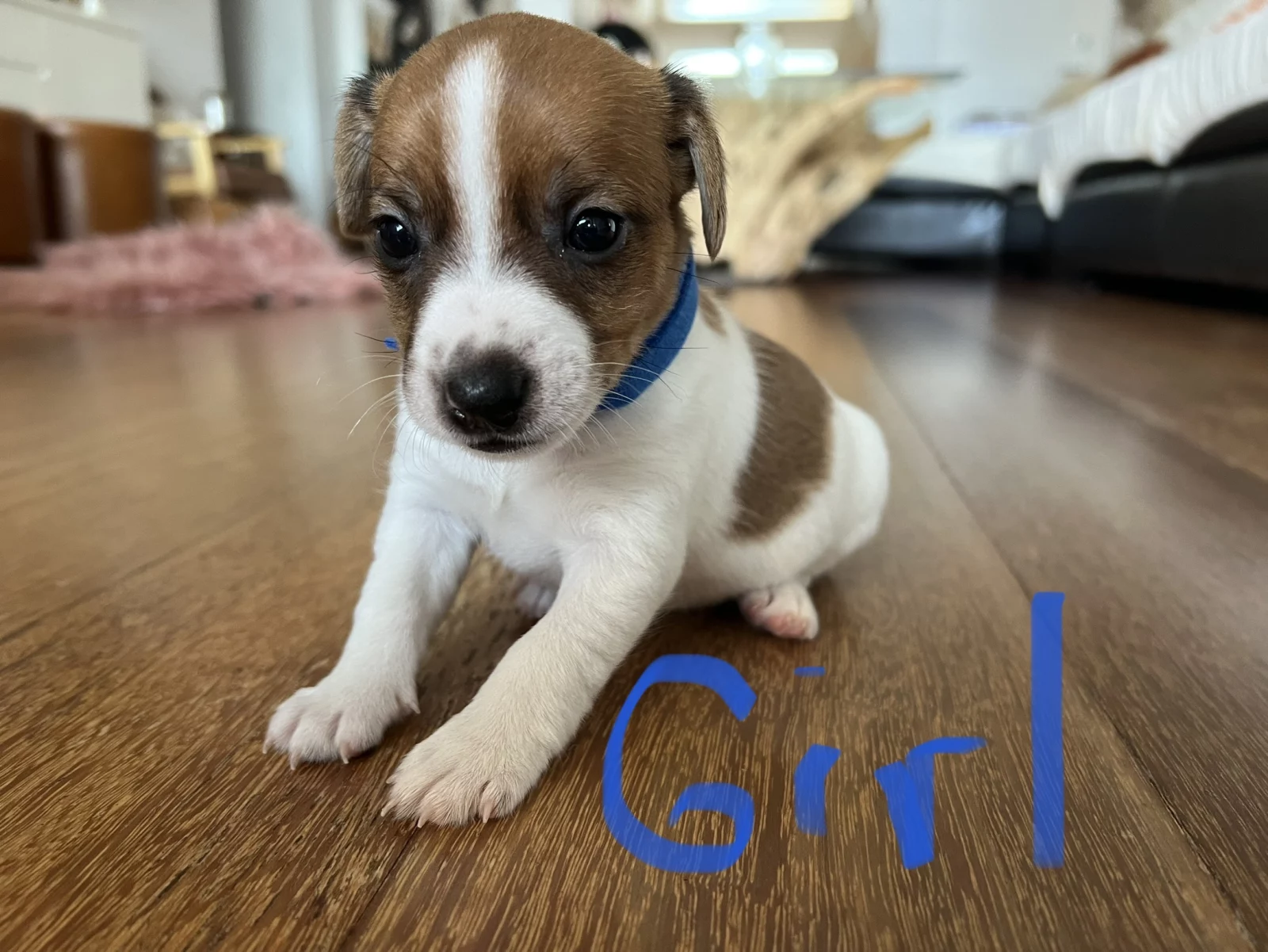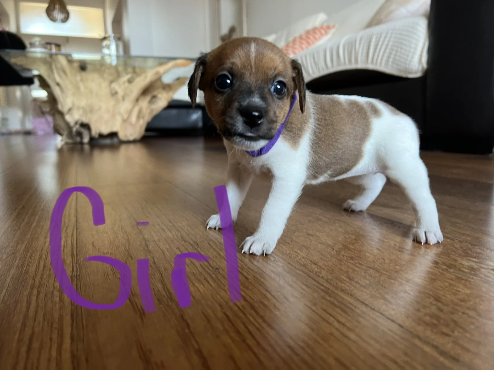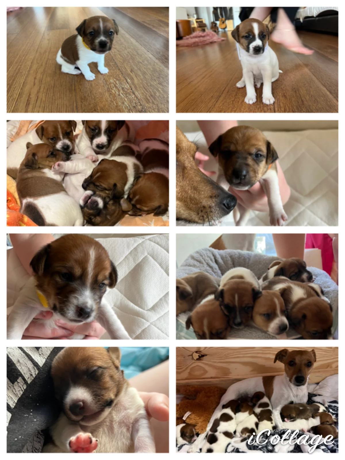 These adorable, loveable puppies are Jack Russell (currently 4 weeks old). They are affectionate, easily trained, and sure to steal your heart. We have 5 girls and 3 boys available, each already showing the bright and playful personality the breed is well known for.