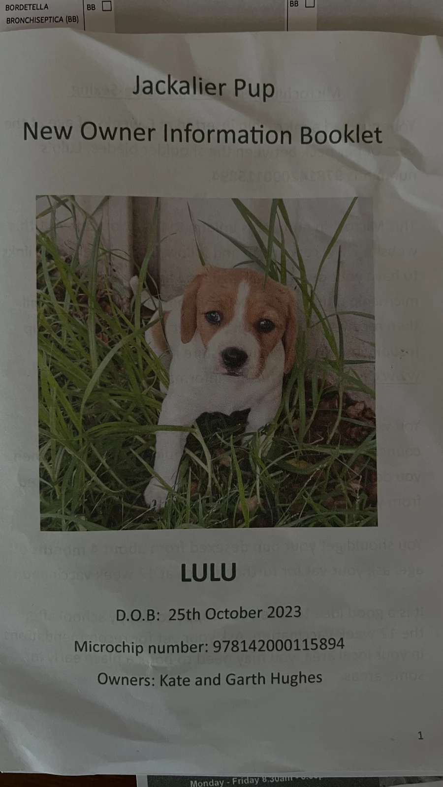 Beautiful 10 month old female Jack Russell x Cavalier looking for her loving forever home.