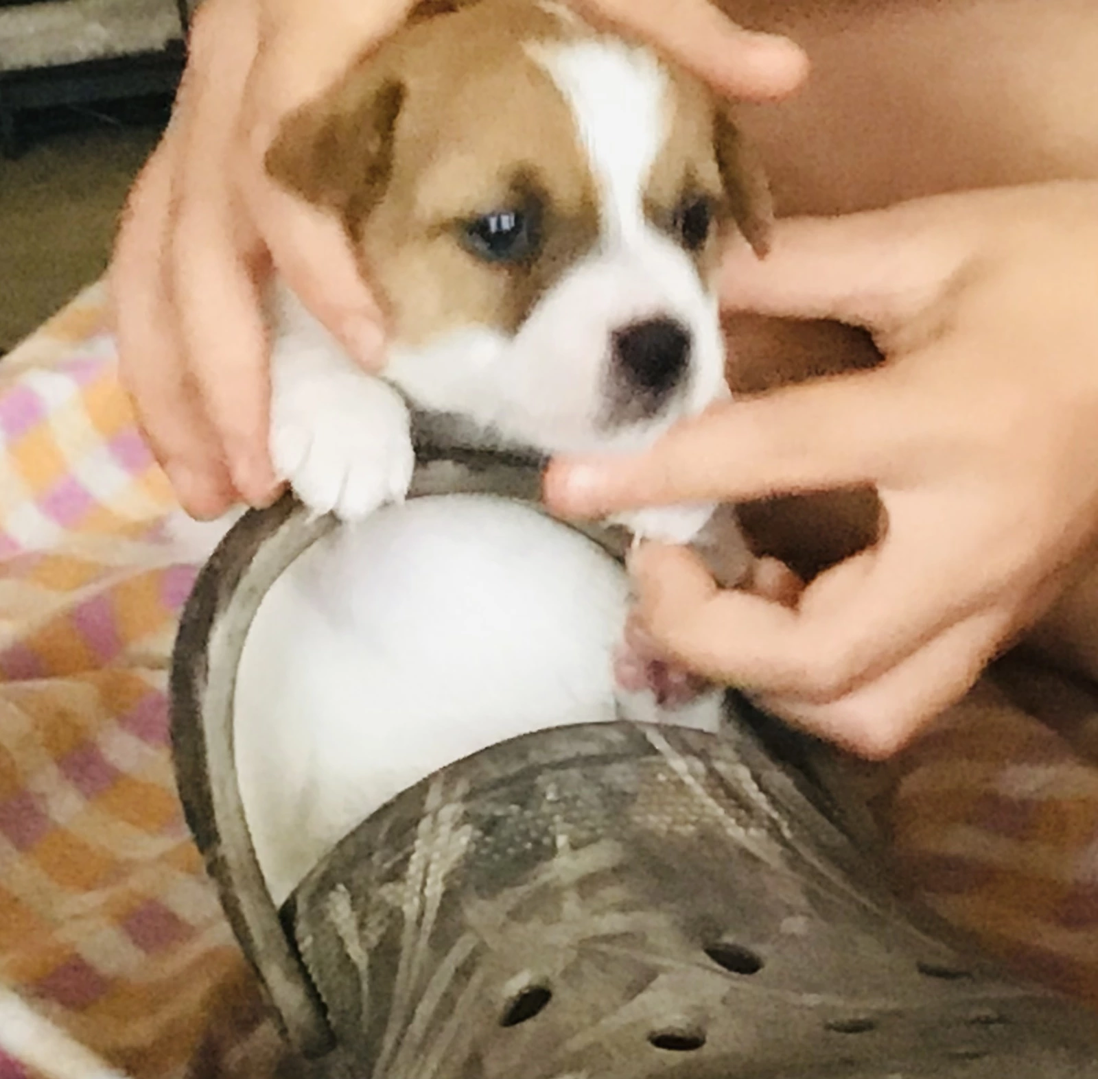 We have 4 beautiful puppies available, including 2 males and 2 females, all with lovely white and brindle coats.