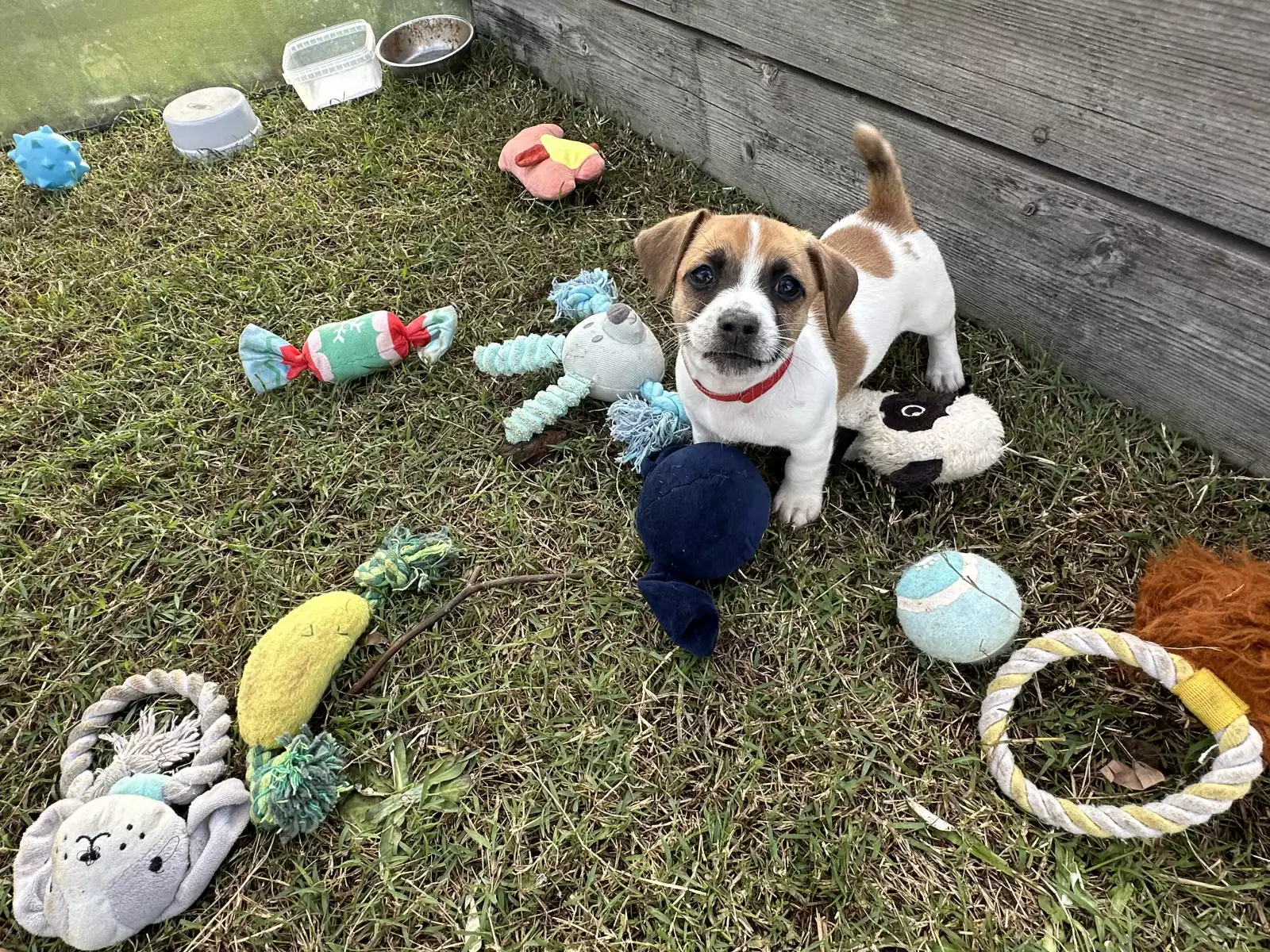 Jack Russell puppies ready to find their loving forever homes. These adorable pups are currently 7 weeks old and were born on 9/03/24. The litter includes 3 females and 2 males, all healthy, playful, and showing the bright, energetic nature the breed is well known for.