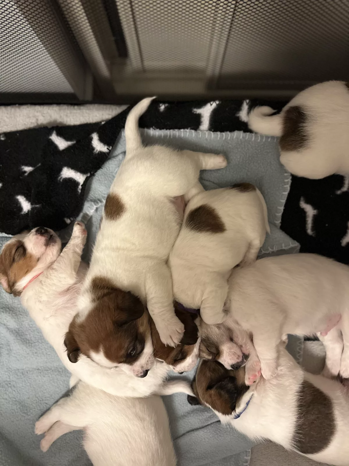 These puppies are already very fond of people and enjoy attention and interaction, showing the friendly and lively personality that Jack Russells are known for.