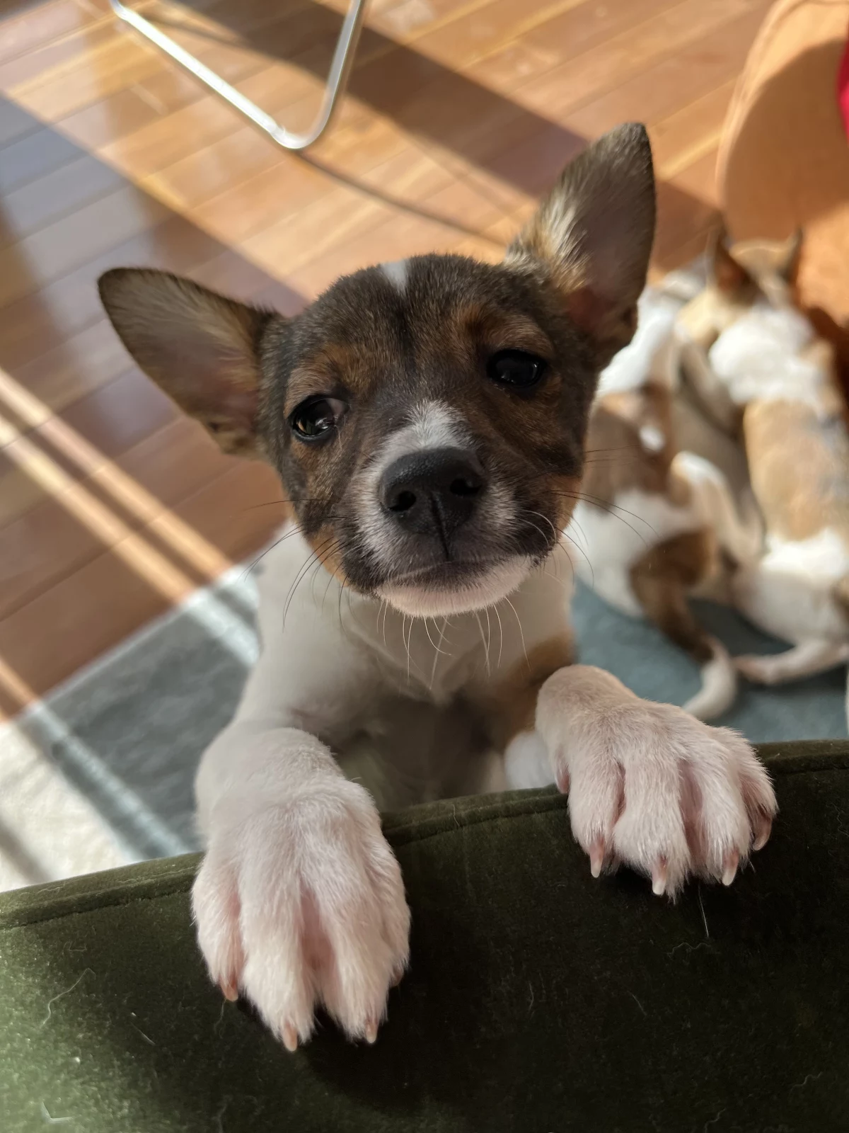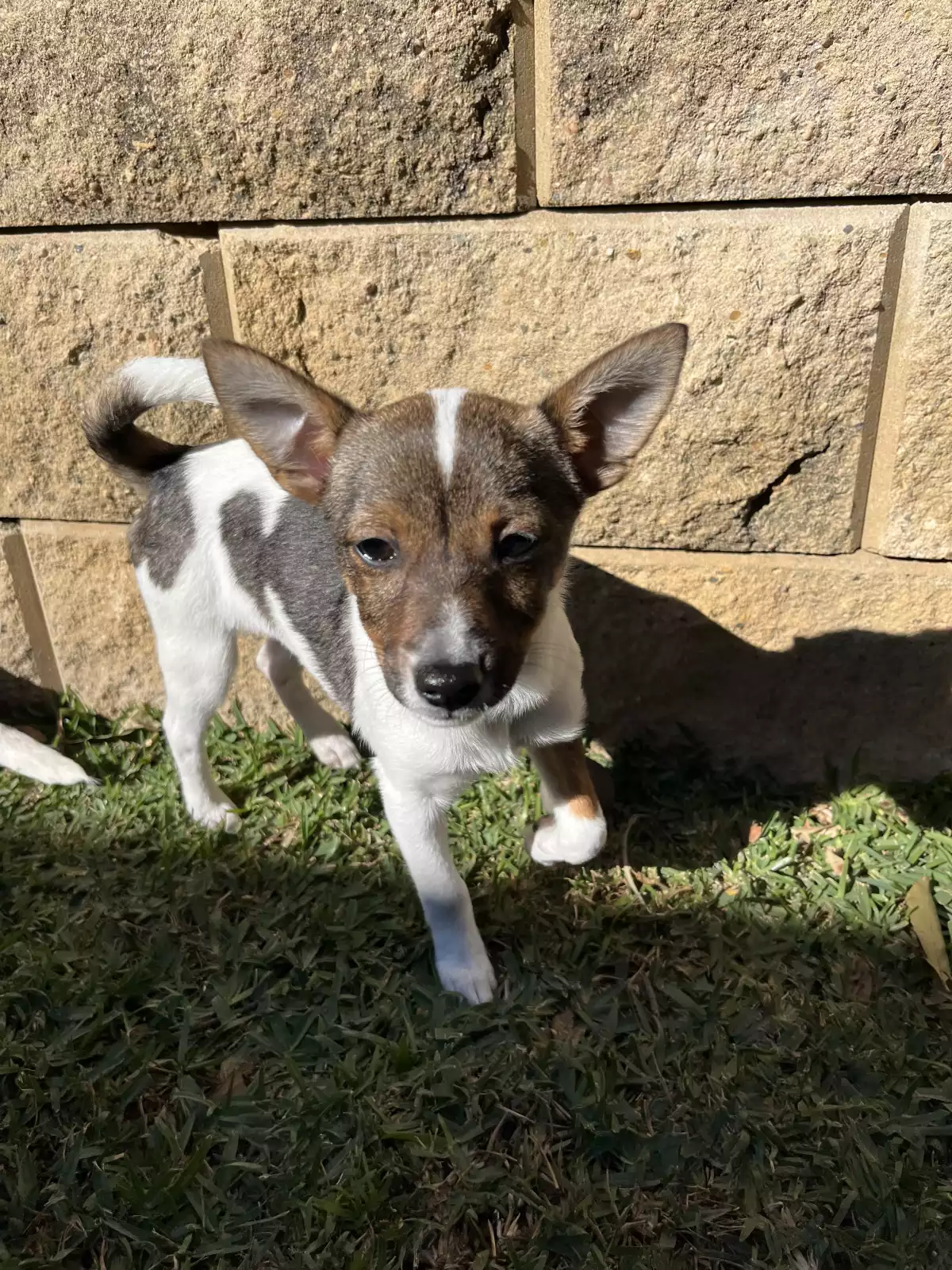 She plays happily with her sisters and has a bright, positive energy, making her both playful and affectionate. This mix often combines the friendly personality of the Japanese Spitz with the lively spirit of the Jack Russell, creating a wonderful little companion dog.