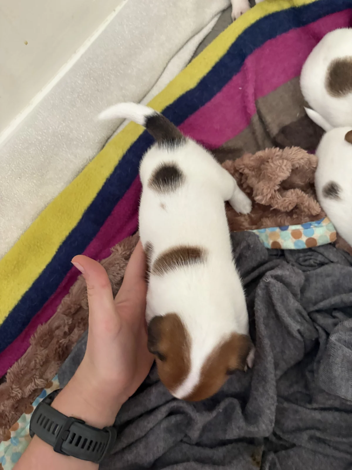 We have 5 beautiful Jack Russell puppies looking for their forever homes — 3 girls and 2 boys. Born on 28th April, they’ll be ready in 2 weeks (at 8 weeks old).