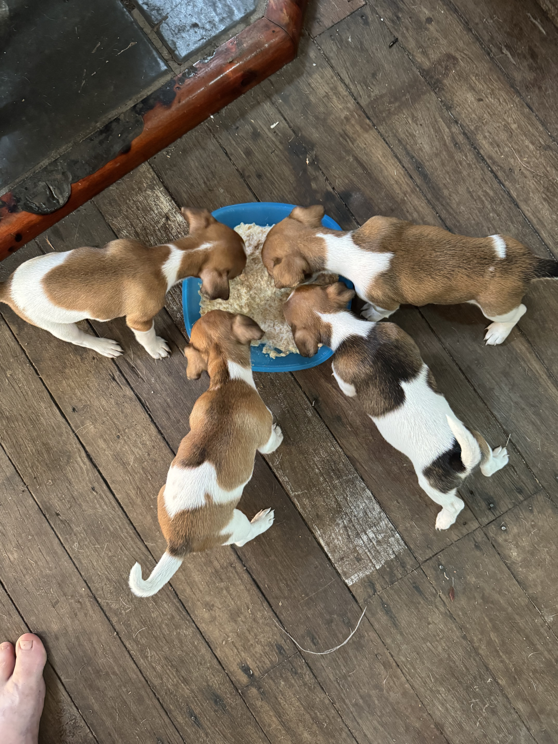 Our puppies are free range and rule the whole house, they are living with their mum/dad/brother and sister, as well as 3 cats and 2 horses. They eat everything that is presented, but they really love to steal the cat kibble. They all sleep together in the one bed at night but throughout the day they randomly sleep where-ever they feel is comfortable. We do not have any routines in place only that they have get lots of cuddles and play time all day.