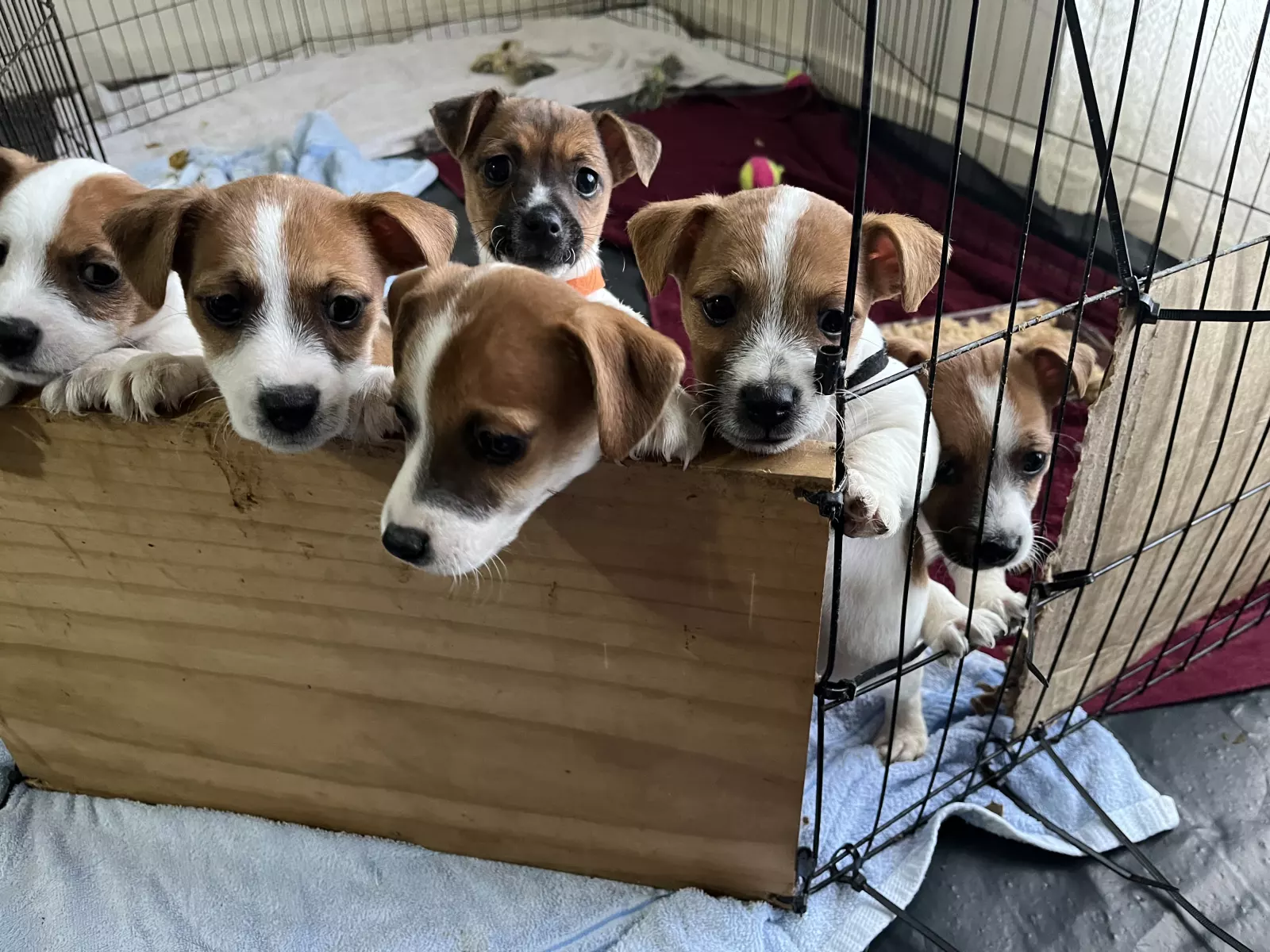 These lovely puppies are full of personality and already showing the bright, playful nature the Jack Russell breed is well known for. They are energetic, affectionate little dogs who enjoy attention, playtime, and being around people.