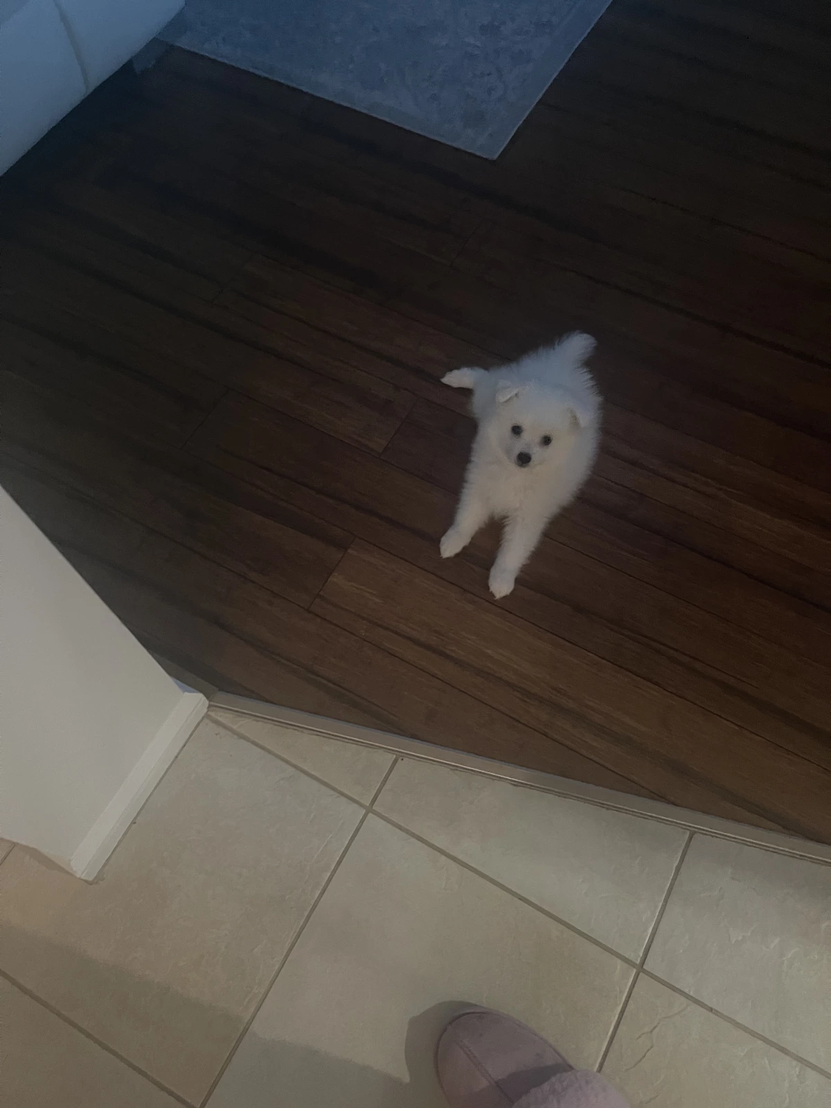 Our beautiful Japanese Spitz puppies have been lovingly raised in our home and are accustomed to an indoor lifestyle. They sleep indoors and enjoy indoor playtime, ensuring they are comfortable around people and everyday household routines. From birth to 6 weeks they were fed Wombaroo milk, and they are now thriving at approximately 1.8kg, happily eating solid food and drinking goat’s milk.