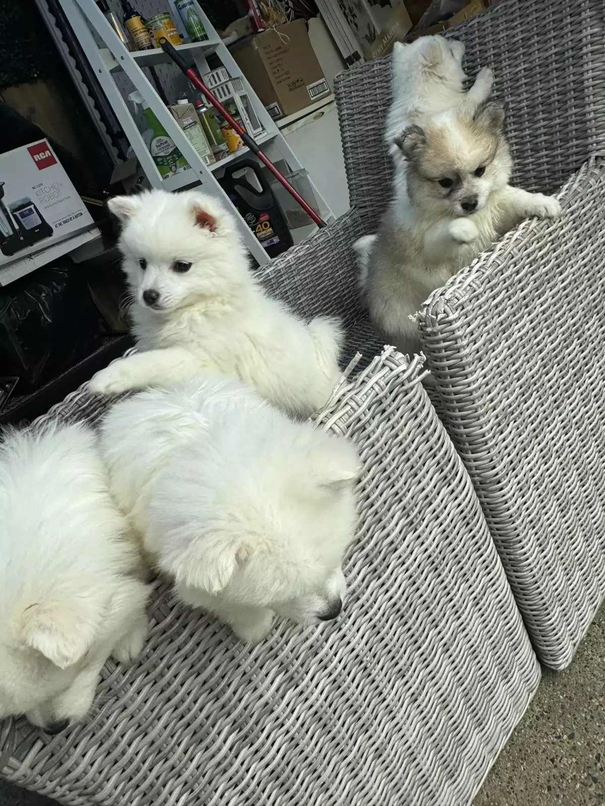 We are excited to announce the availability of our adorable Pom/Japanese Spitz puppies! Born on the 4th of April, these little bundles of joy are now 9 weeks old and ready to bring happiness and love into your home.