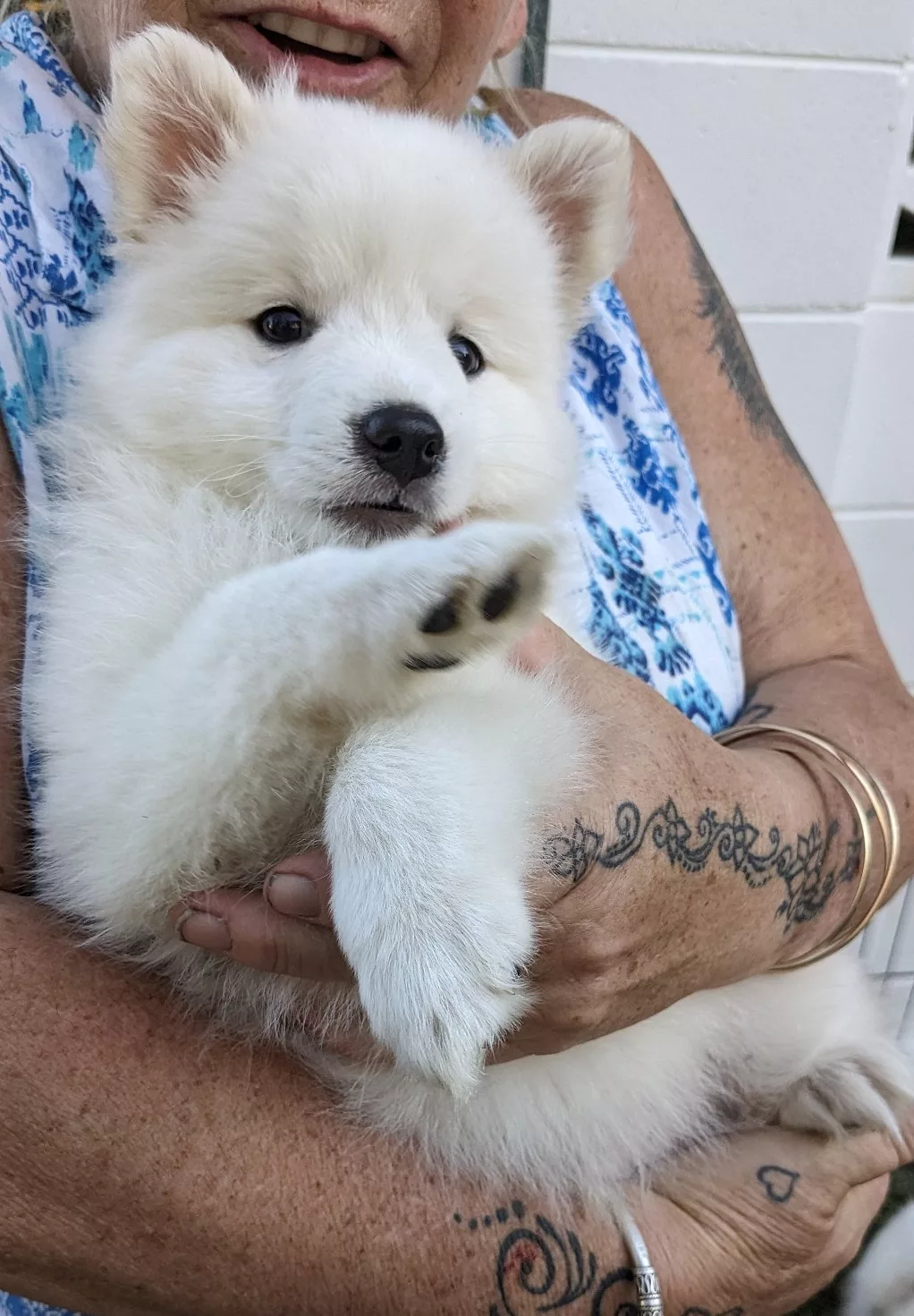 We have 2 girls and 1 boy available, all purebred Japanese Spitz puppies with beautiful temperaments and adorable personalities. These little ones are smart, playful, affectionate, and easy to care for — making them wonderful companions for families, couples, or individuals looking for a loyal best friend.