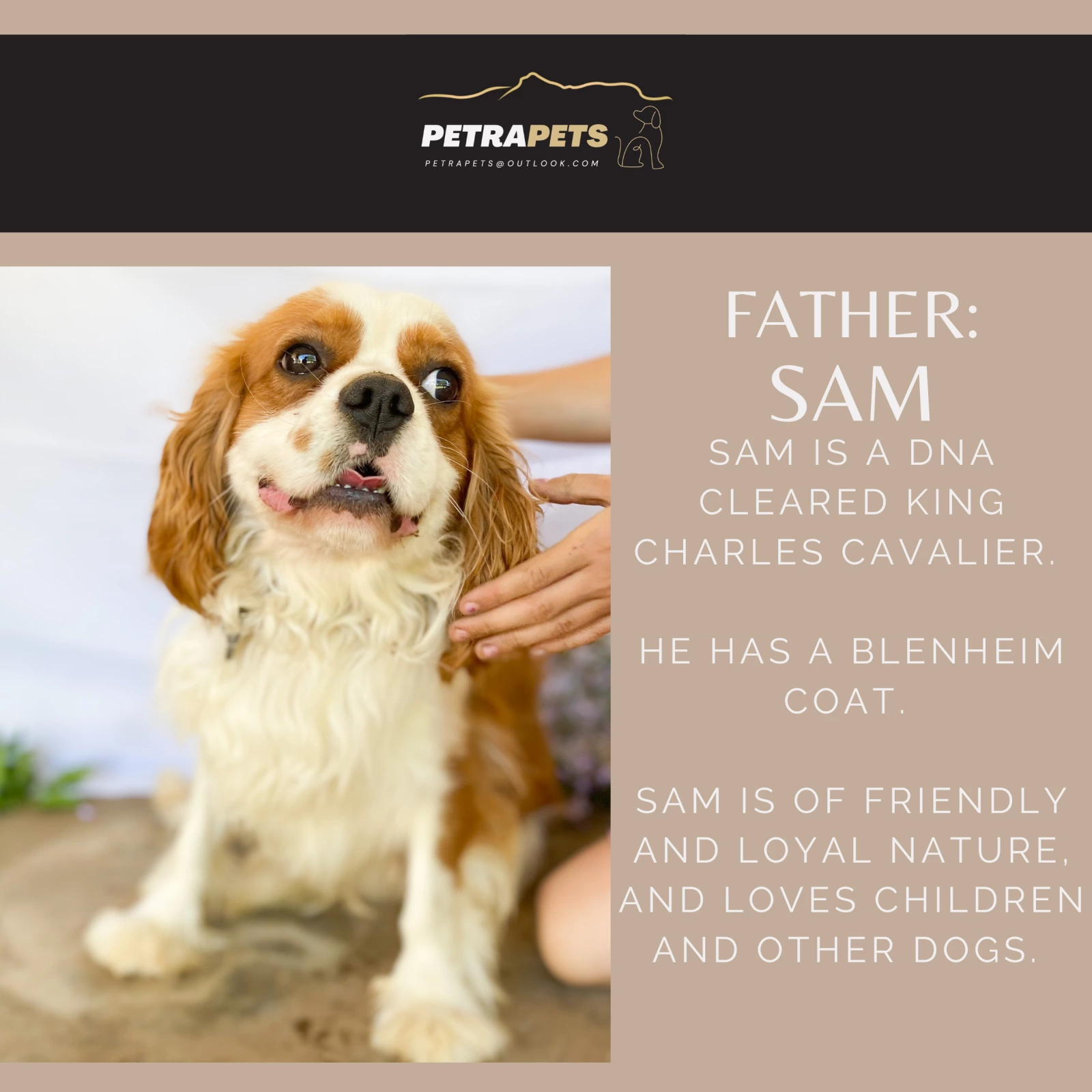 King Charles Cavaliers are loyal, sweet tempered, playful and gentle.