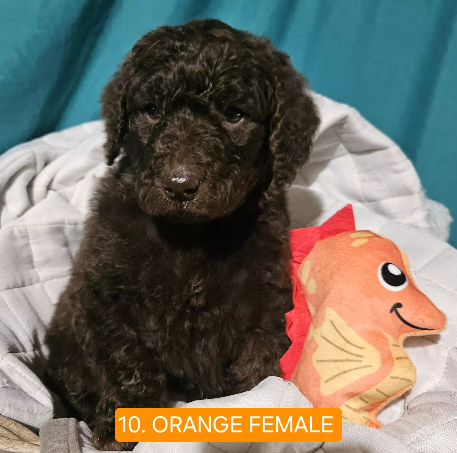 10. Orange collar, female - Sooky nature, cuddly but up for rough play with the boys.