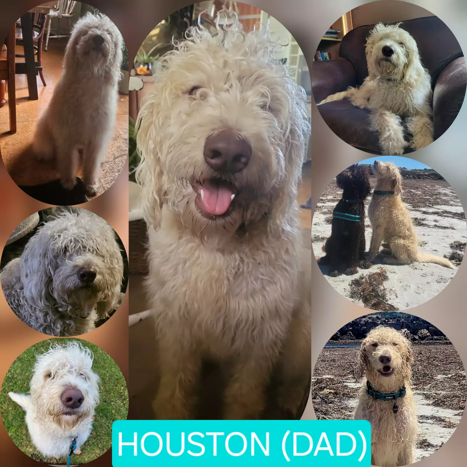 Dad - Houston (yes, we have a problem) Super smart, friendly, loyal, ball and toy obsessed, easily trained, laidback, food and attention orientated, mud magnet and all-round good boy.