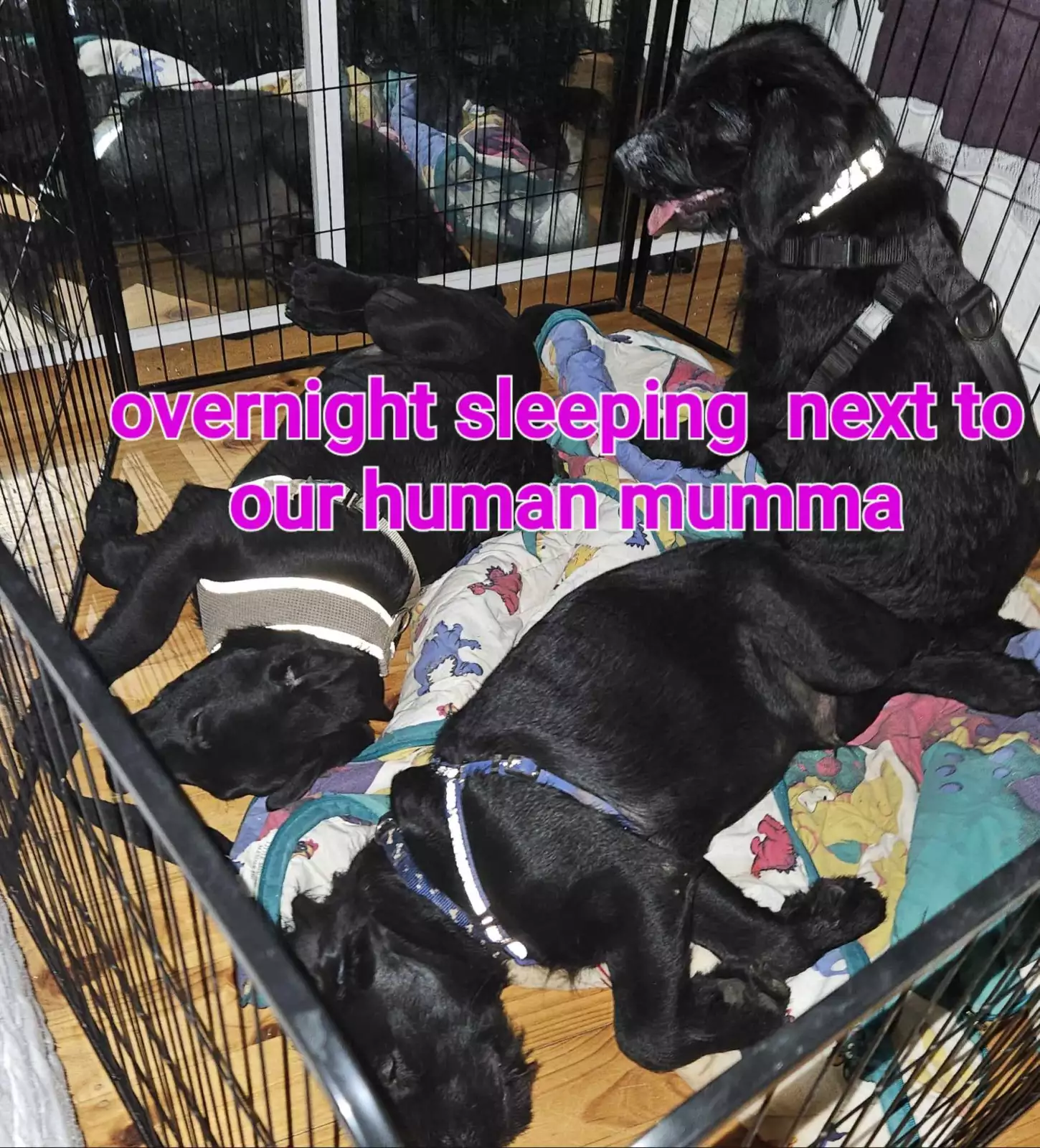 The puppies sleep in my bedroom - effectively they are Night crate trained and learning toilet training (no number 2 accidents for weeks!)- and have been exposed to children and other dogs, usual household goings on and travel. They are very good travellers! (I'm a drive in drive out worker). Pretty laid back and just fit into family life and “hey this is what we are doing now….” Mentality.