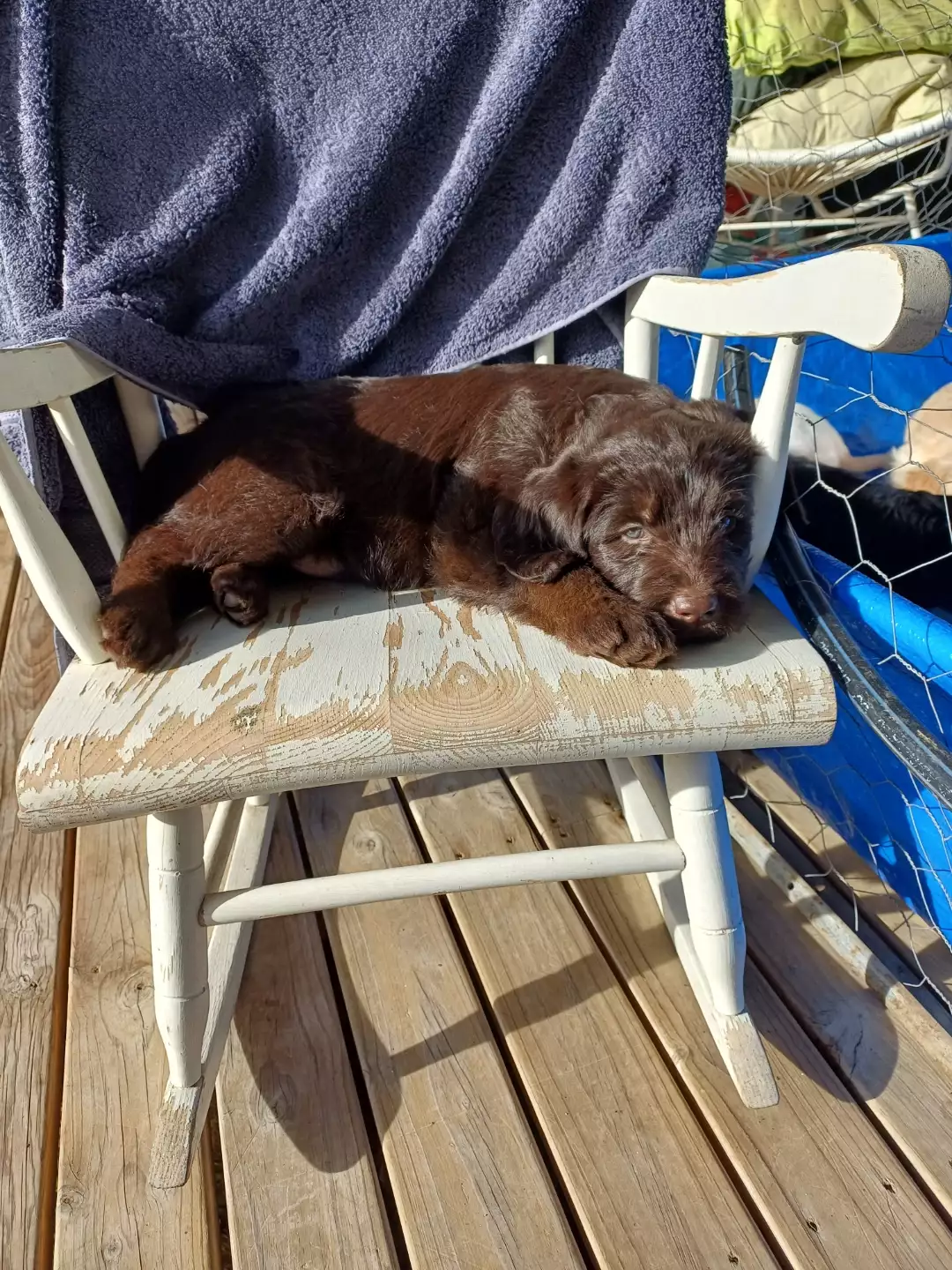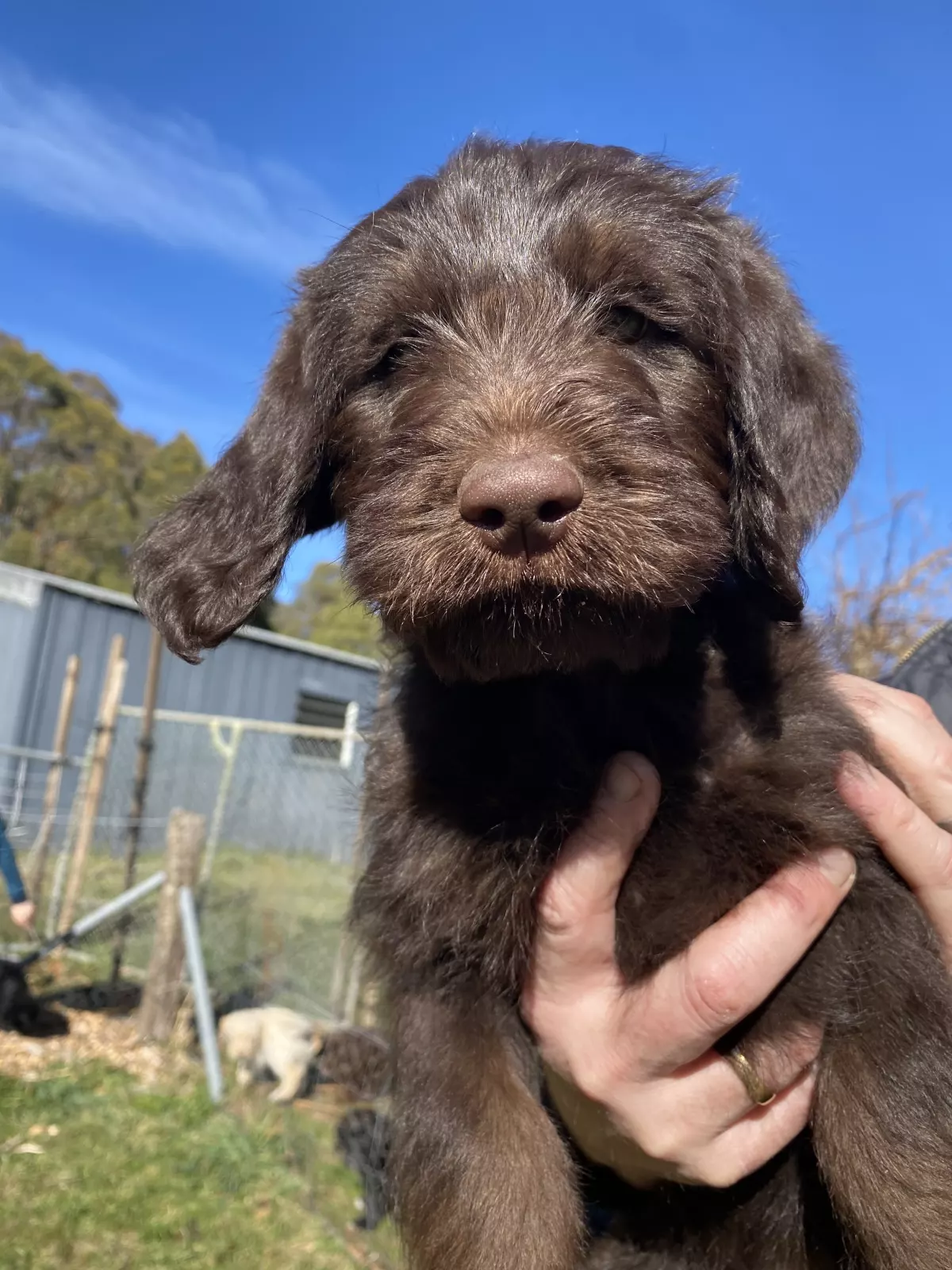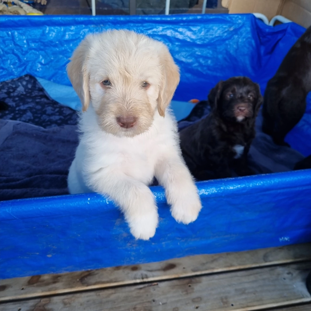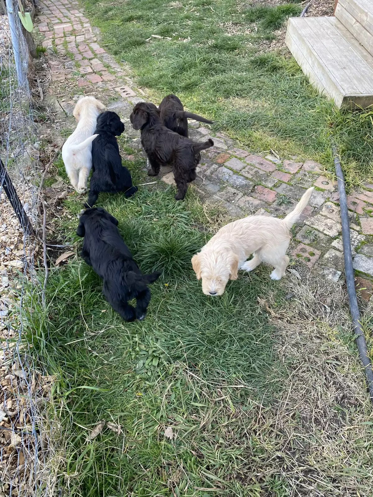 These pups are the first and only litter from our beautiful Labrador, fathered by a very handsome Labradoodle. They have spent their days running around on our lush property, getting plenty of exercise and fresh air. They’ve been sleeping inside in a cozy space and have been fed fresh puppy mince after two weeks of nursing from mum. They are well-socialized with kids of all ages and other dogs.