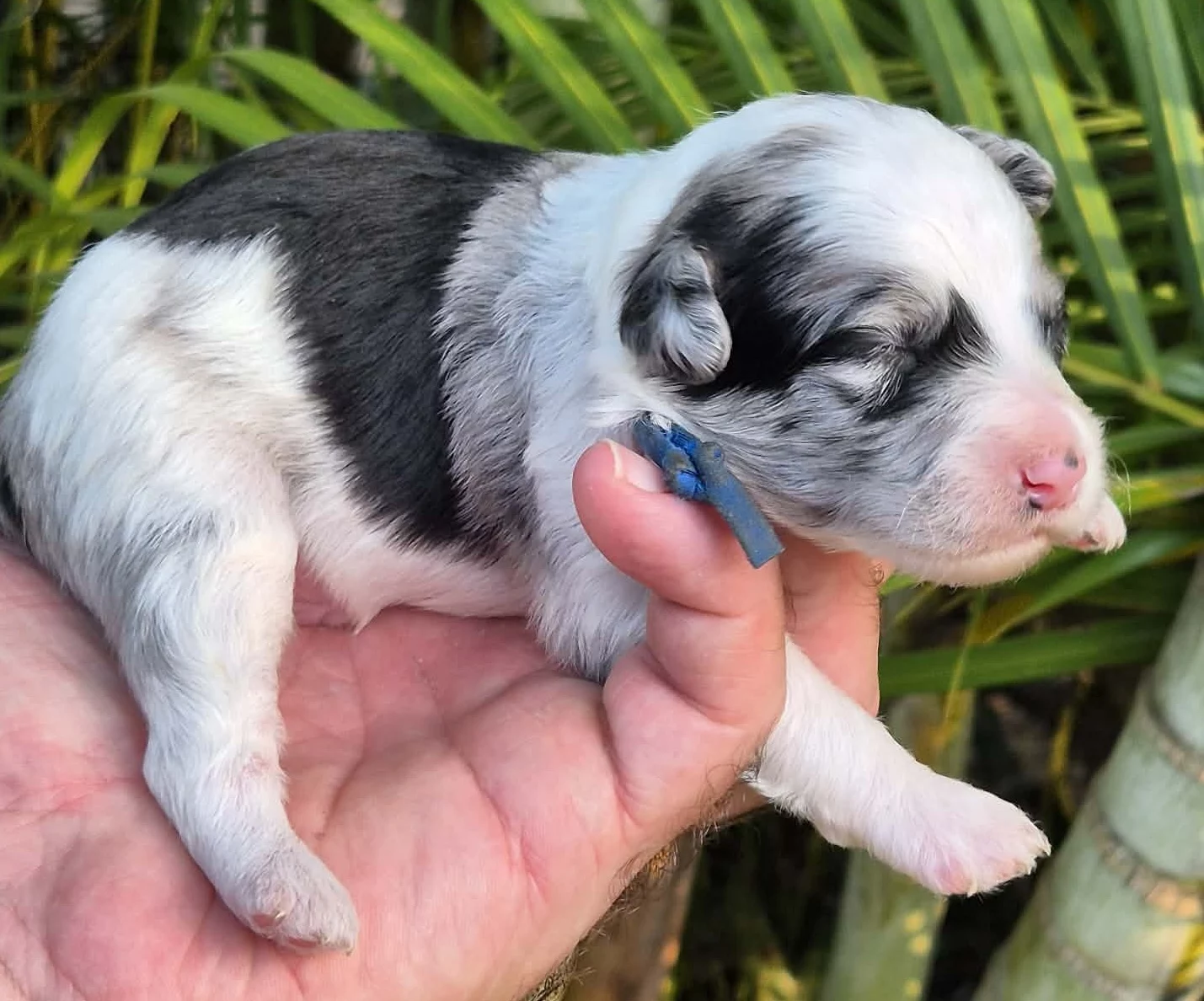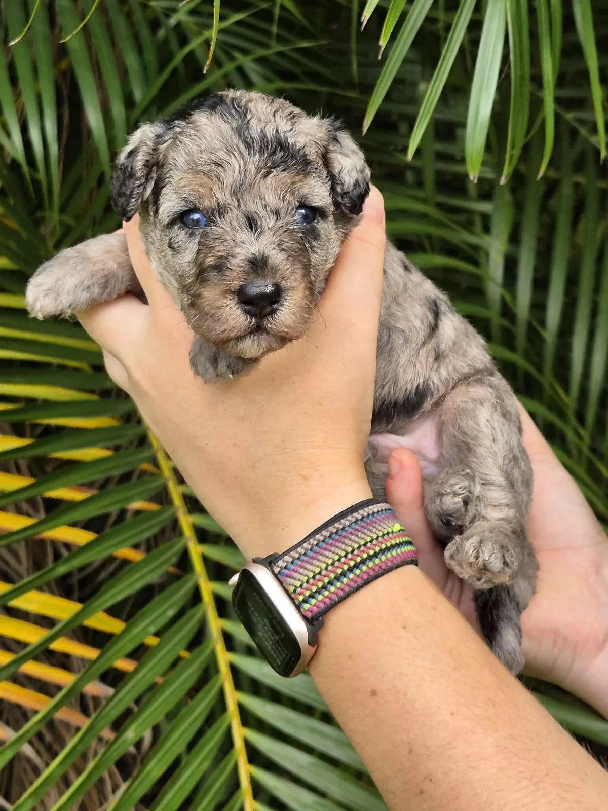 Dad is a blue eyed Merle labradoodle weighing 10kg