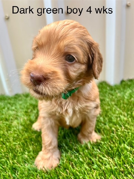 This stunning caramel boy is a true gem, with a gorgeous, non shedding fleece coat. He is confident, outgoing, quick to settle, and very people-focused, making him a joy to be around. He has a playful and affectionate nature that will bring happiness to any home. He is expected to grow to be a medium-sized dog, about knee height, think Border Collie size. This boy will be the perfect addition to any family looking for an energetic, loving companion. Whether for playtime or cuddle sessions, he will thrive in a home that can provide him with plenty of love and attention.