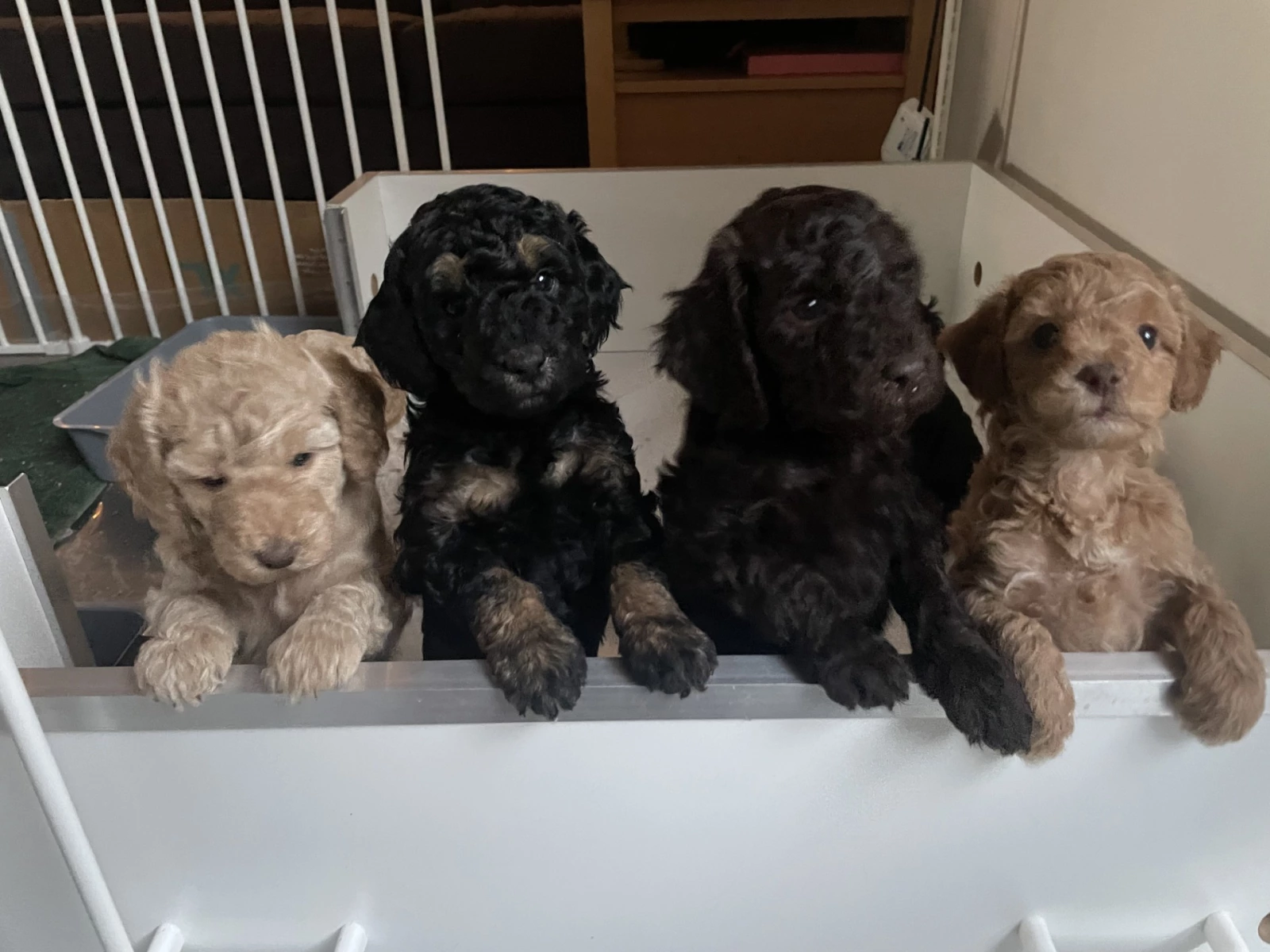 Bigger than a Cavoodle and smaller than a Labradoodle or Groodle, Miniature Labradoodle make wonderful, loving, playful, family friendly pets, are low-no shedding. The parents of our litter are our loving, family pets: Tan Boy, Monty (10.5kg), and our Chocolate Girl, Penny (12.5kg), DNA cleared through Orivet testing.
