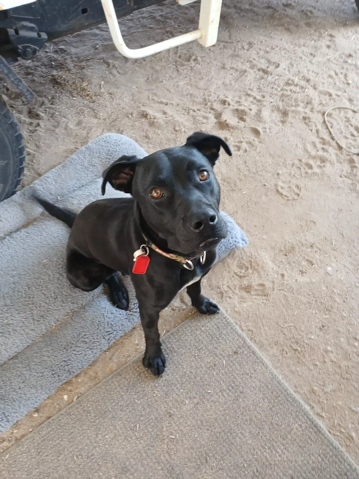 15month old Labrador x Staffy,Jet black,white diamond on his chest,loves kids and adults,playing with toys,rope pulling,walking running etc.Only selling due to some illness and going travelling
