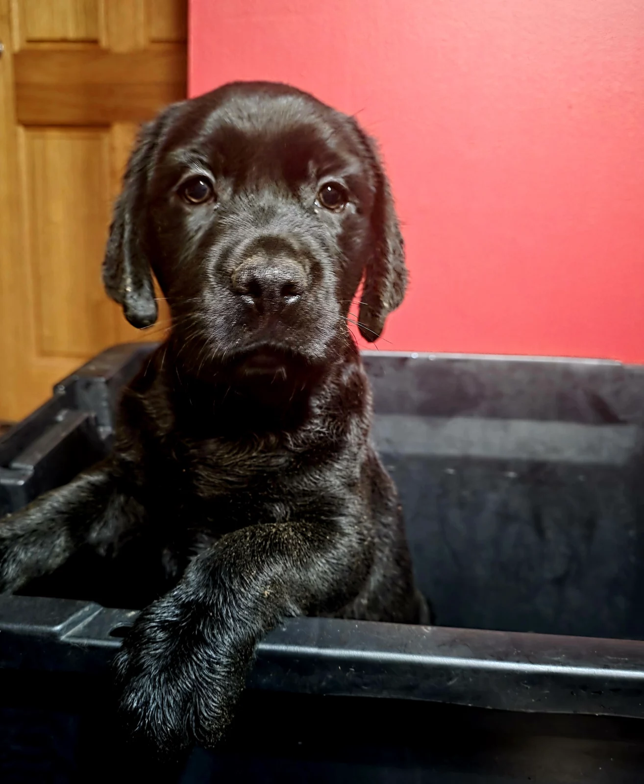 Dad is a pure bred chocolate labrador and mum is a pure bred black labrador – we have had both parents since 8 weeks old and they are both very much loved family pets.