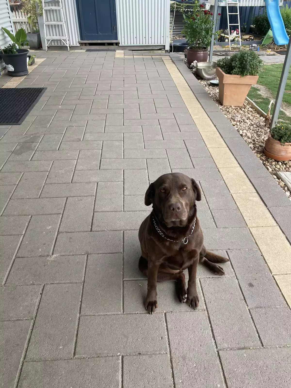 Franky and I walk just about every day She has a kennel and sometimes comes in side where she has her own mat next to my chair She is atypical labrador and carries a shoe or similar in her mouth nearly all day. She loves to go for a swim