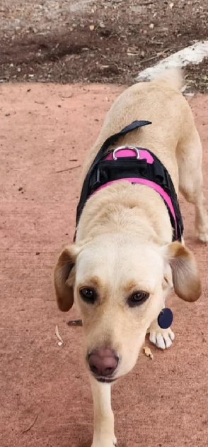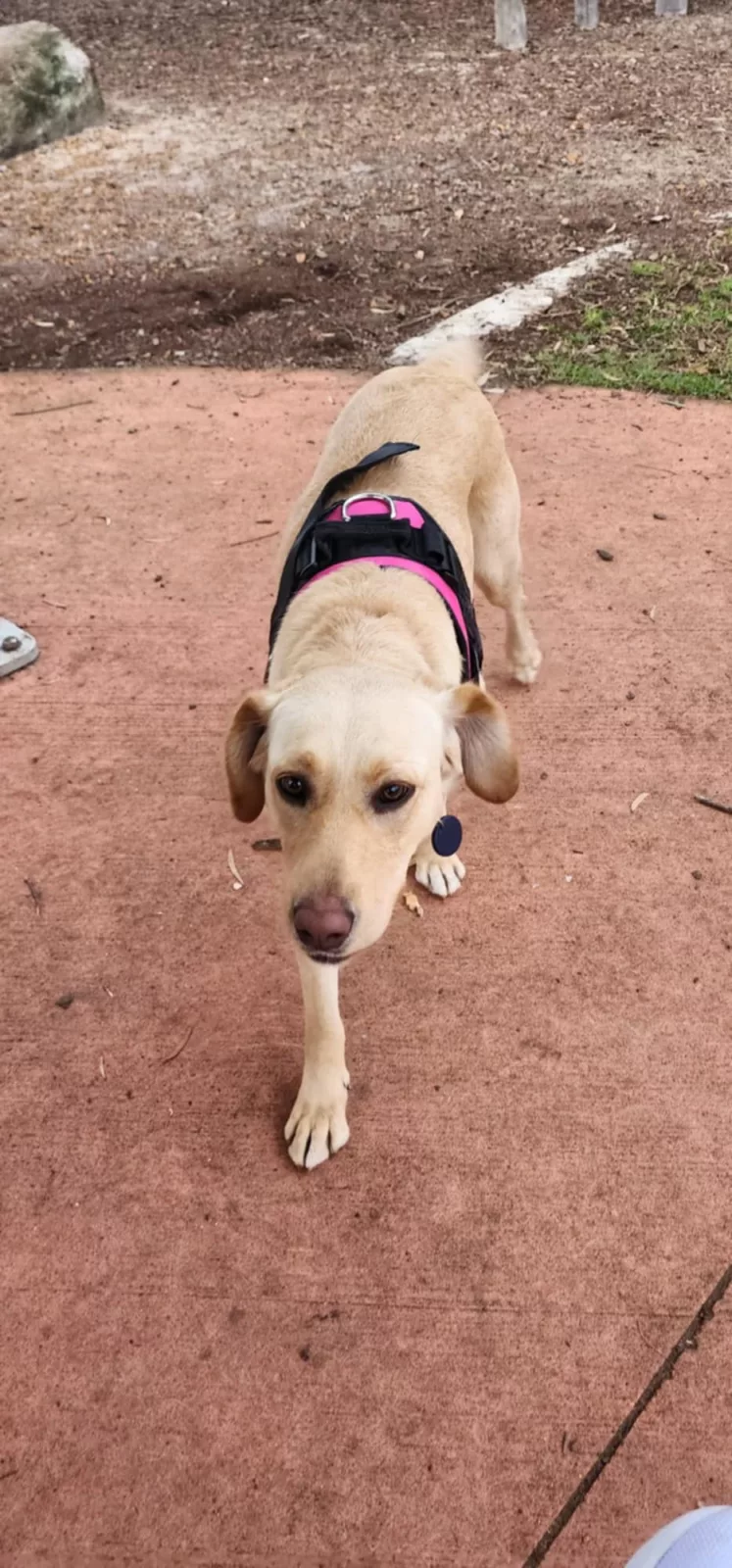 Born on 26/01/2023, her name is Honey. She is a friendly and affectionate dog who is social with other dogs and even a cat. Honey has a gentle personality and enjoys being around people and spending time outdoors. Sadly our yard is too small for her, and the place we are moving to will have even less space. Because of this we feel it is only fair to find her a better home where she can have room to play and be happy. She is a beautiful natured girl and deserves a family who will love and care for her forever.