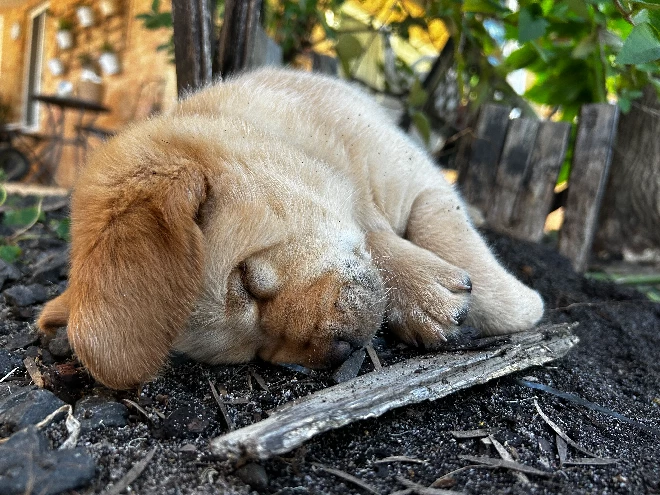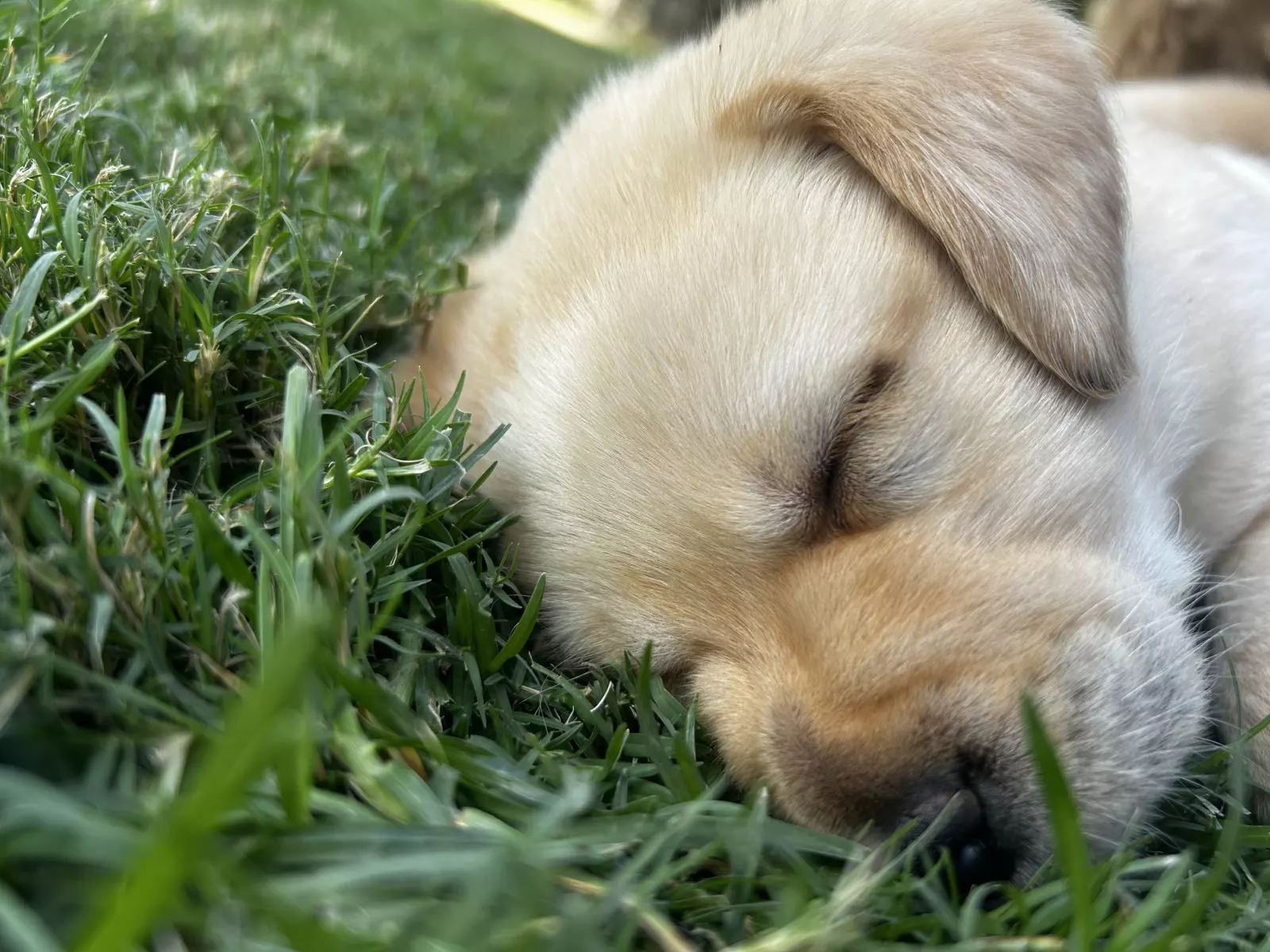 🪴 Our pups spend their days playing outside on the lawn with Mum and Dad, and their nights snuggled inside warm and cosy.