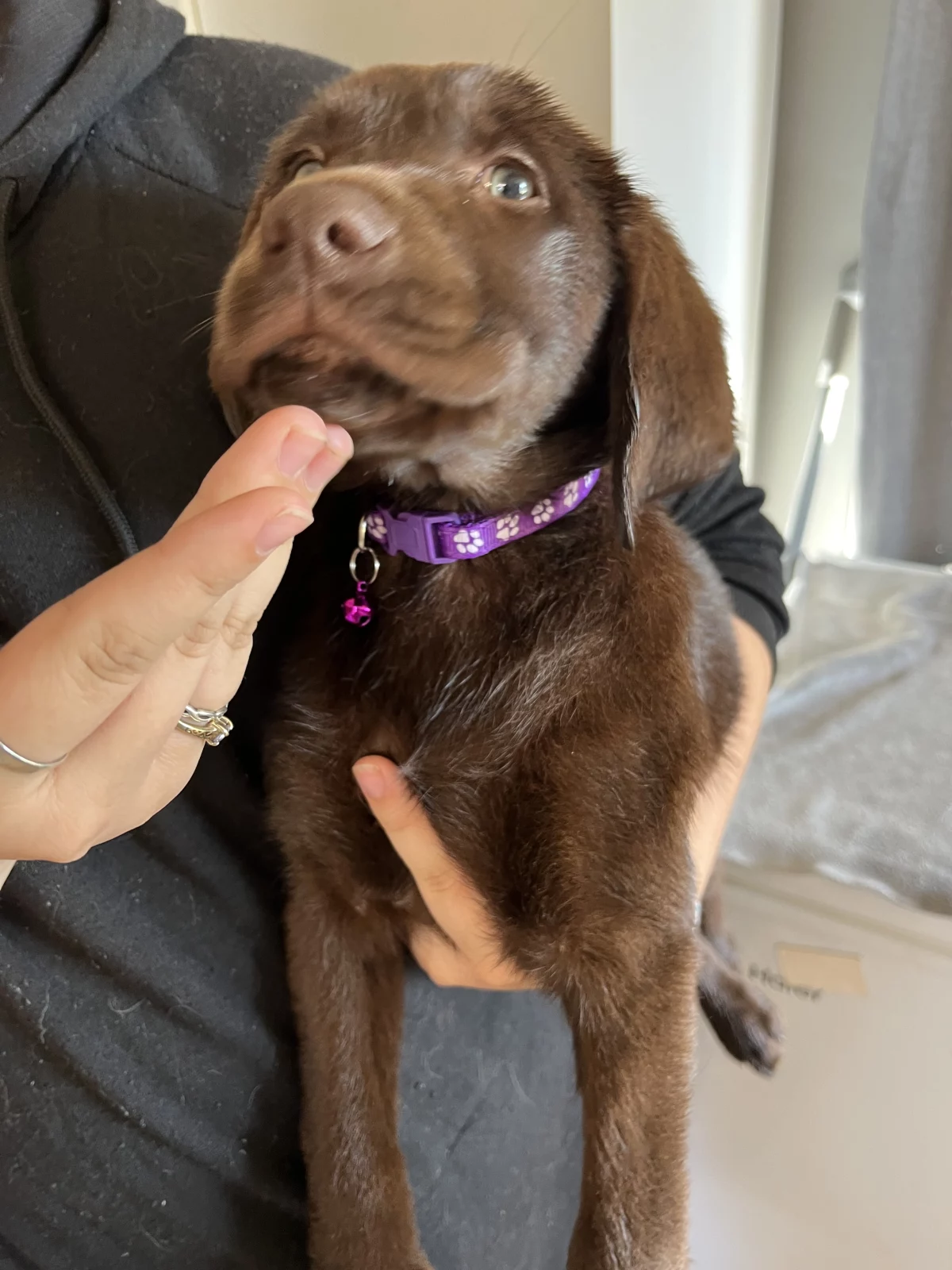 Both mum and dad are chocolate Labradors with wonderful temperaments and are great with people and other animals. The pups live with cats, other dogs, very young children and teens, so they are well socialised and used to a busy family environment.