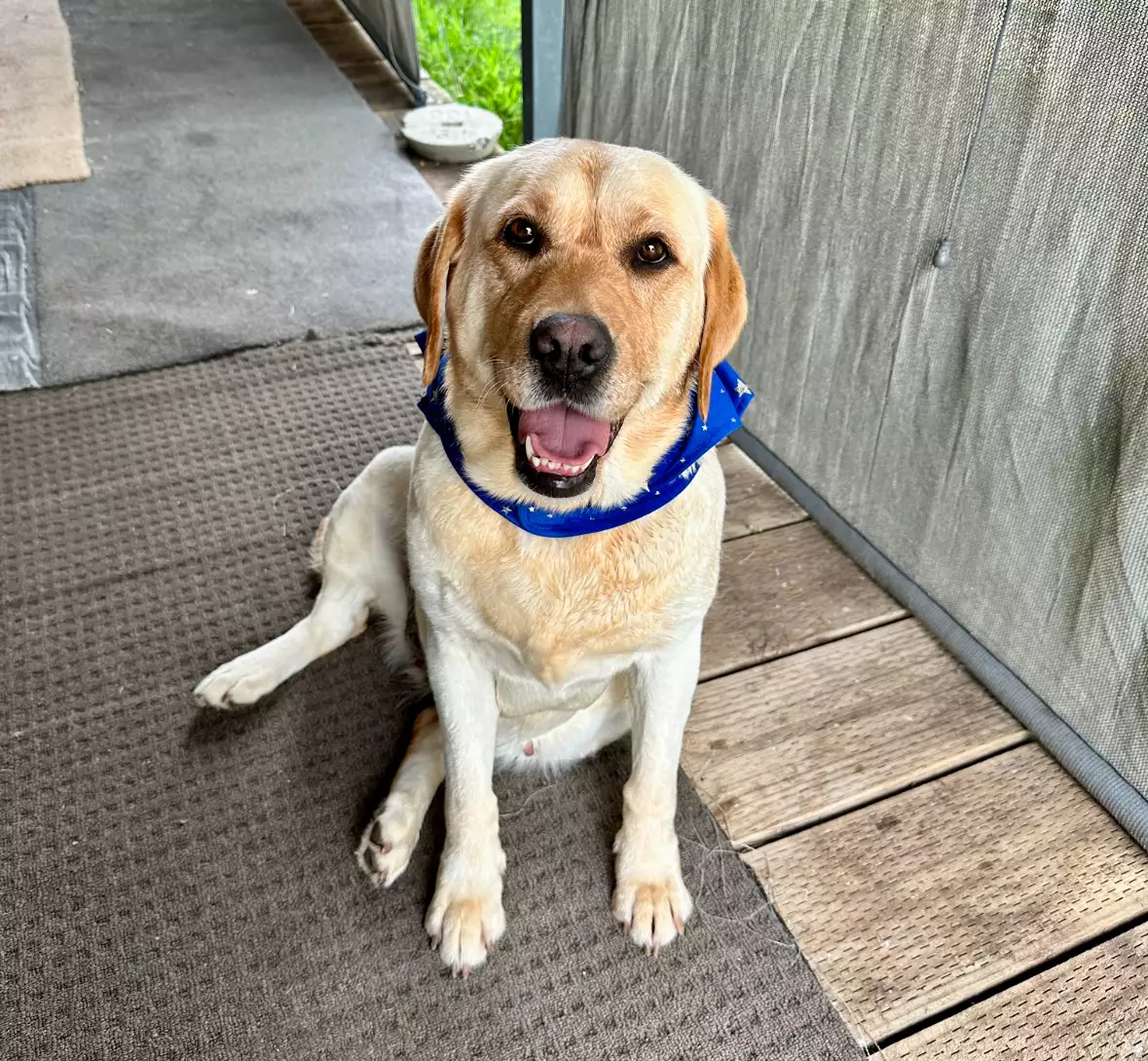 Dogs have access to: warm bedding, water at all times, ample space to exercise, natural light