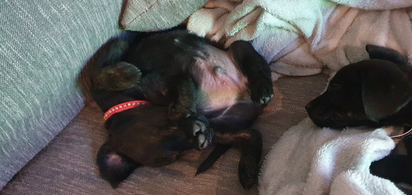 Dogs have access to: warm bedding, water at all times, ample space to exercise, natural light