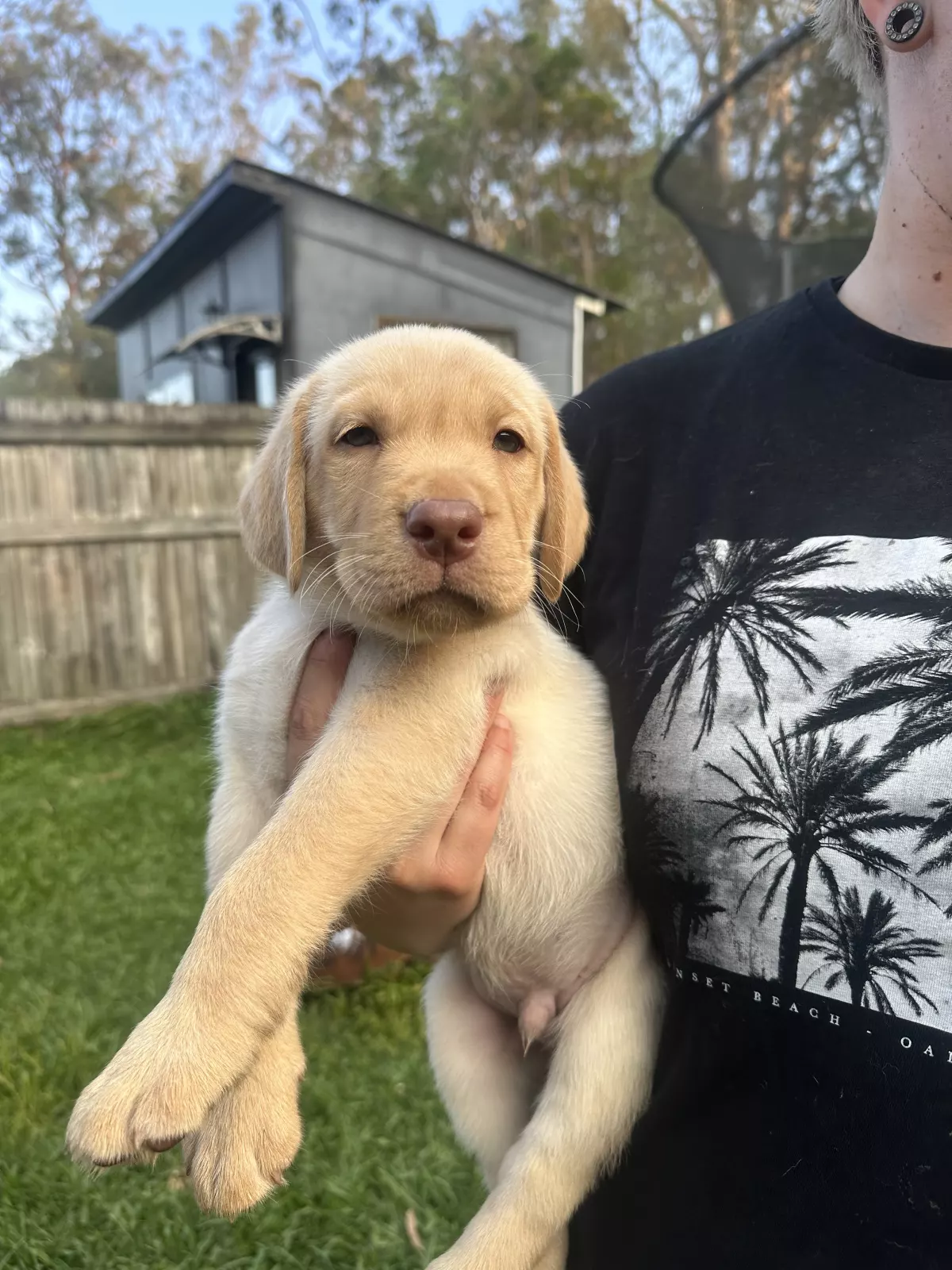 Both parents have a loving temperament. Dad is a purebred chocolate Labrador and mum is a purebred golden Labrador. Can see mum on visit/pickup very calm in nature.