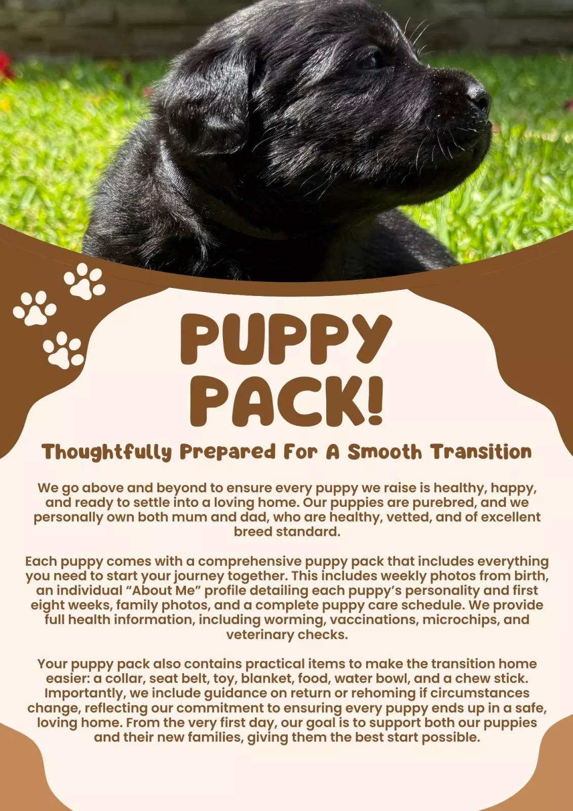 To help each puppy settle happily into their new home, we provide an extensive puppy pack, including: