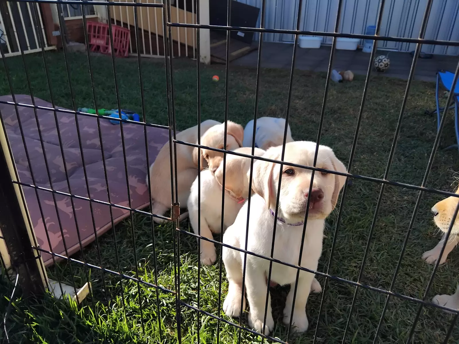 Gorgeous 10 week old golden Labrador pups ready for their new homes. These beautiful puppies have been raised in a caring environment and are already showing the friendly, gentle temperament Labradors are known for. They are playful, affectionate and enjoy spending time with people. The pups are healthy, active and developing lovely personalities that will make them wonderful companions for families or individuals.