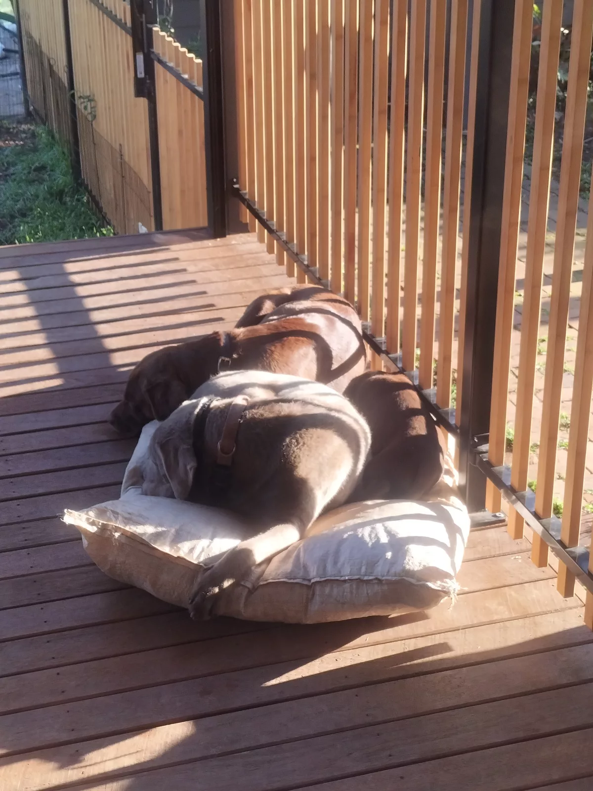 Dogs have access to: warm bedding, water at all times, ample space to exercise, natural light