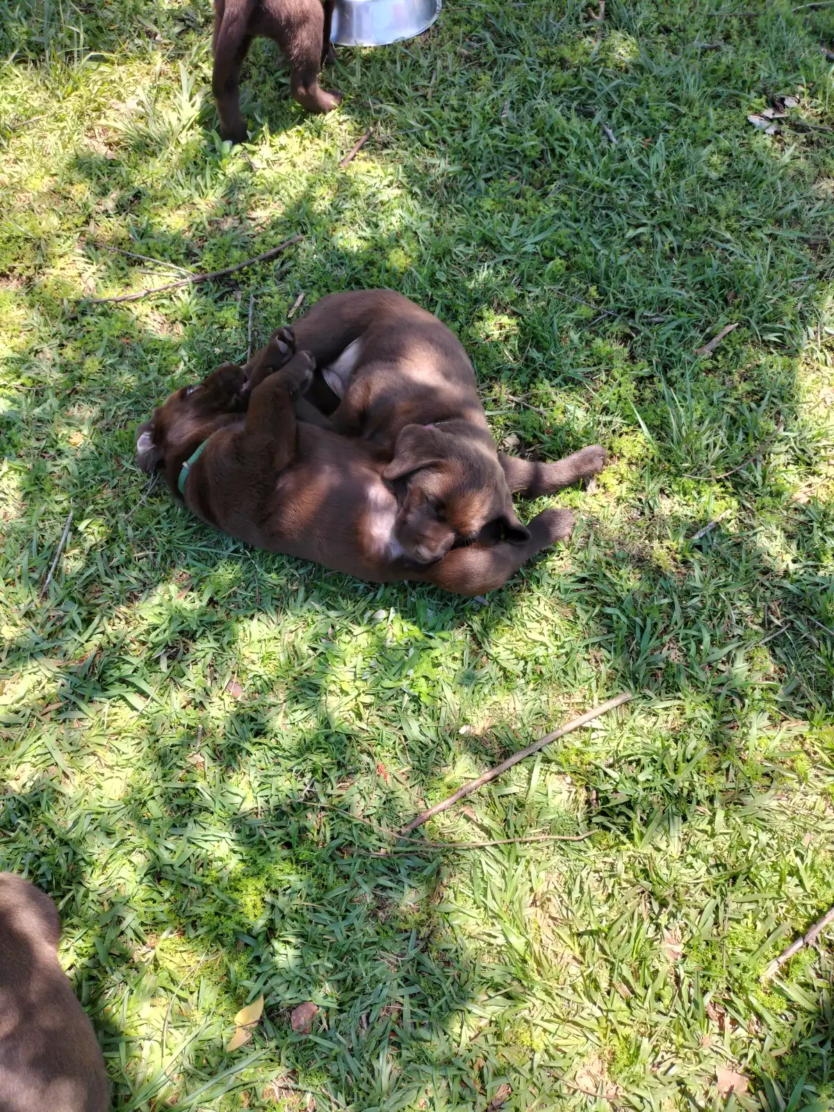These puppies are Pinot and Max's second litter, we own both Pinot and Max who are much loved family pets. Pinot is a purebred Chocolate Labrador and Max is an extremely rare Silver Labrador (confirmed as a Labrador by DNA testing). Four of the puppies already have new homes so we have one golden boy, one chocolate boy and one chocolate girls available.