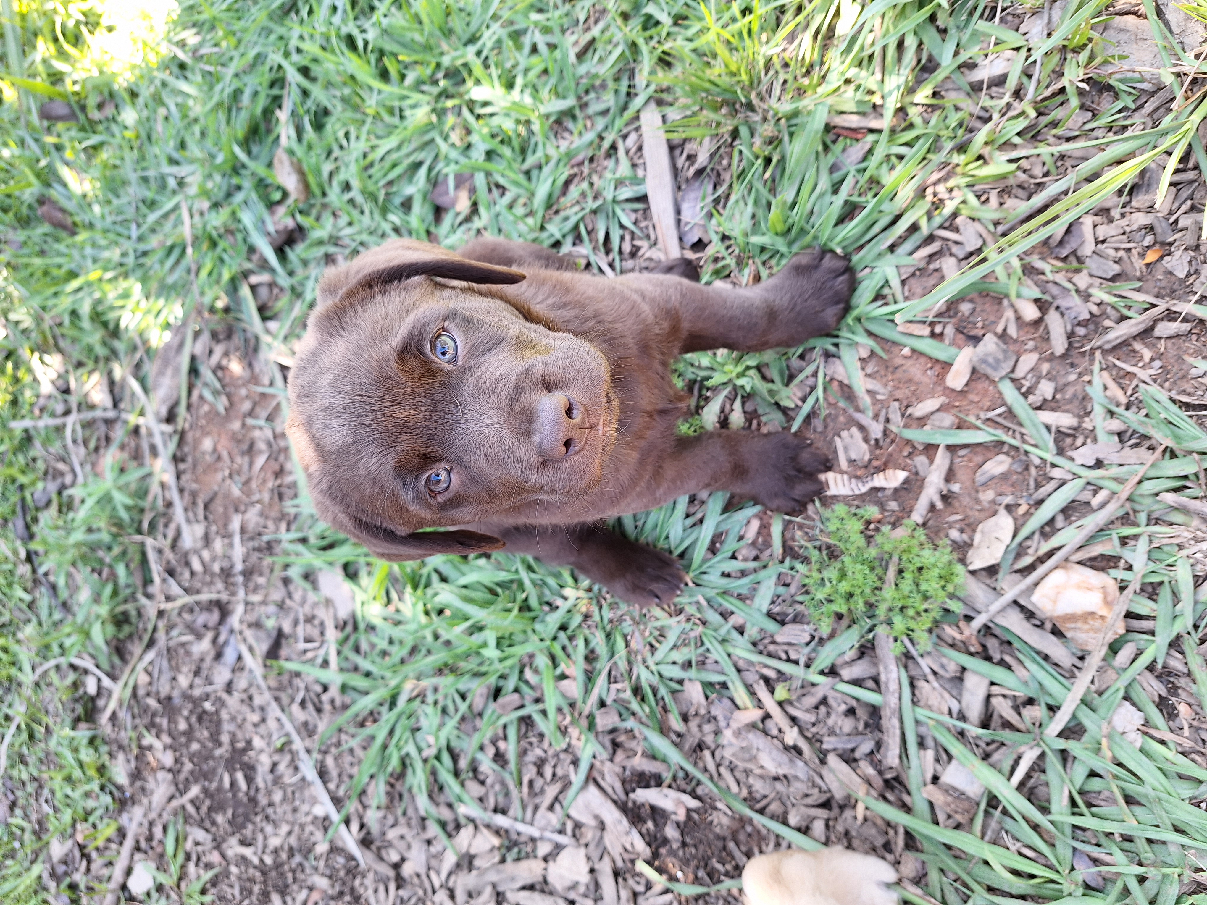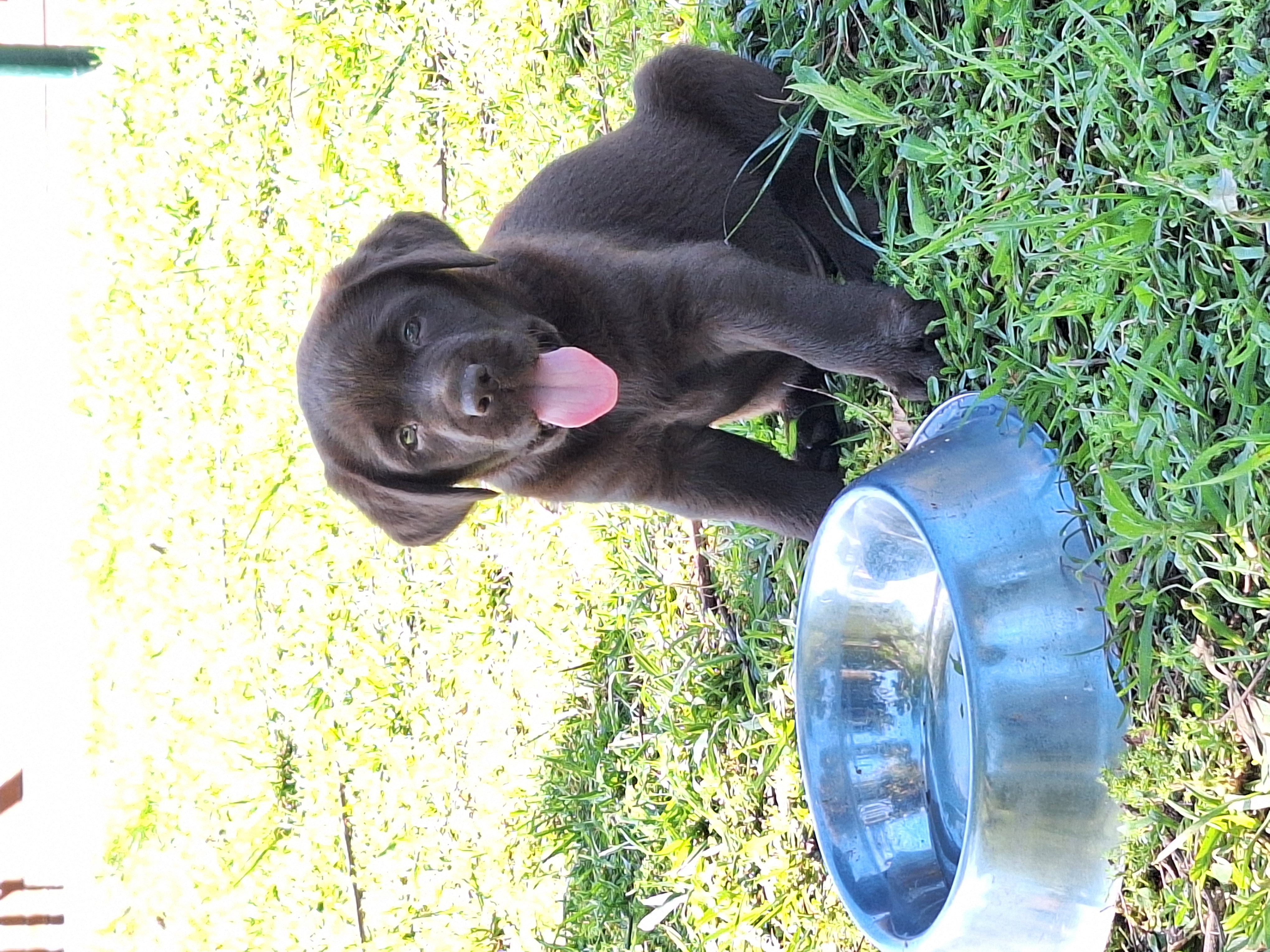 These puppies are Pinot and Max's second litter, we own both Pinot and Max who are much loved family pets. Pinot is a purebred Chocolate Labrador and Max is an extremely rare Silver Labrador (confirmed as a Labrador by DNA testing). Four of the puppies already have new homes so we have one golden boy, one chocolate boy and one chocolate girl available.