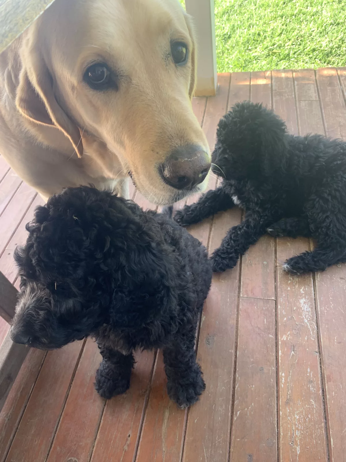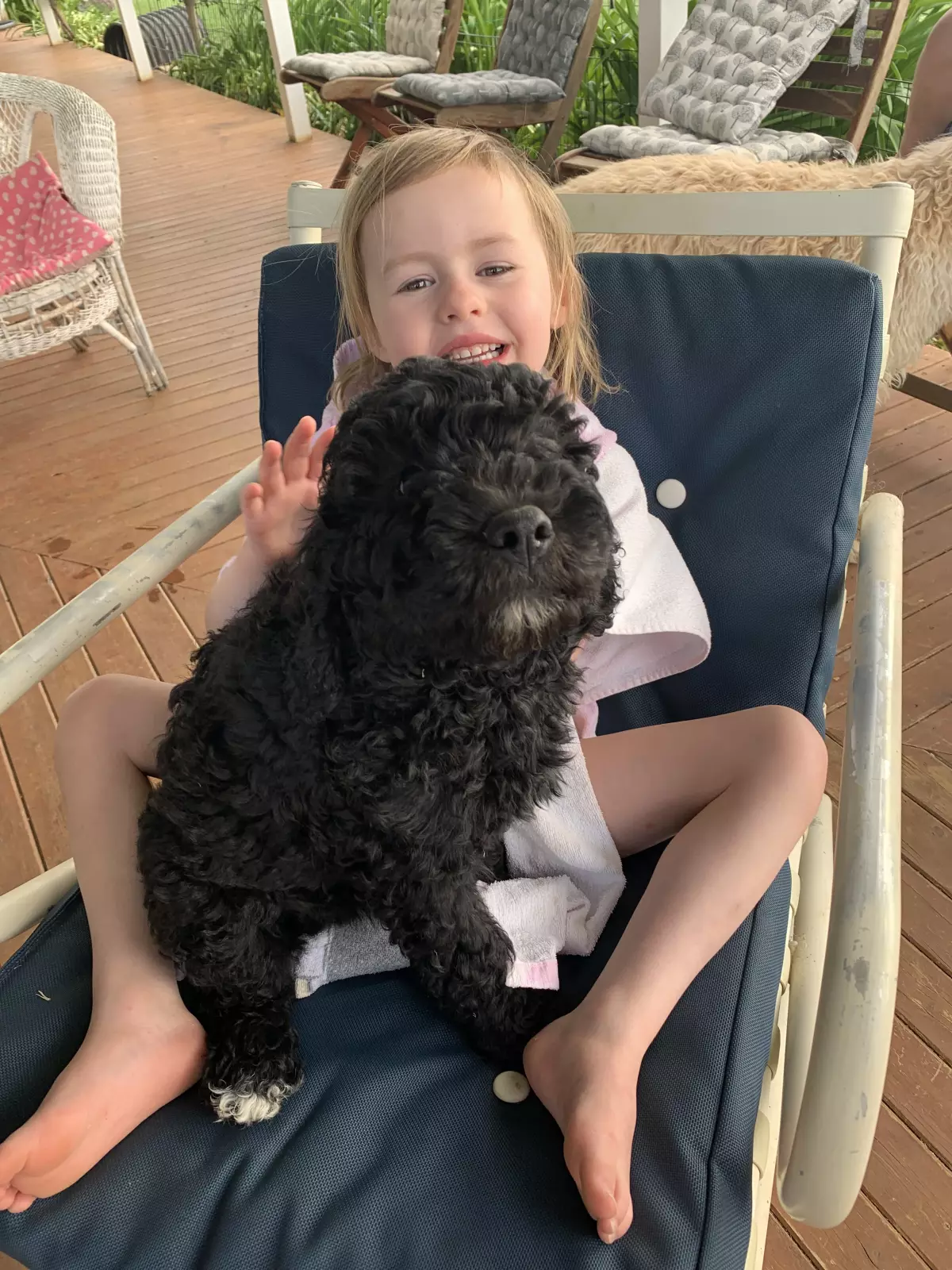 The mum is an F1 Labradoodle named Cookie and the Dad is a tri-coloured Parti Poodle (DNA tested and cleared).