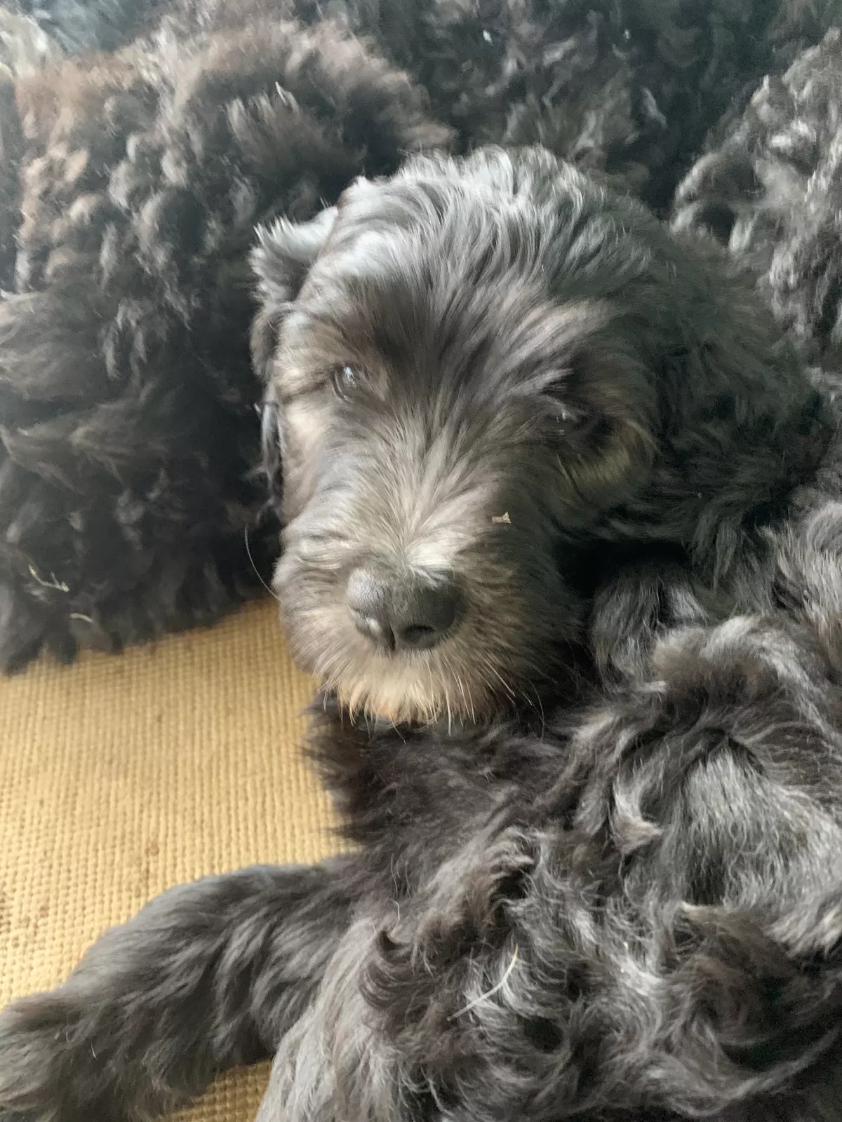 7 x 11 week old F1B Labradoodle Puppies available. These pups have beautiful loving natures and would make an ideal pet for anyone. They have been raised around adult dogs and children. They have learned basic commands, how to use a doggy door and are basically toilet trained. They adore their toys, and are calm and as loving as can be.