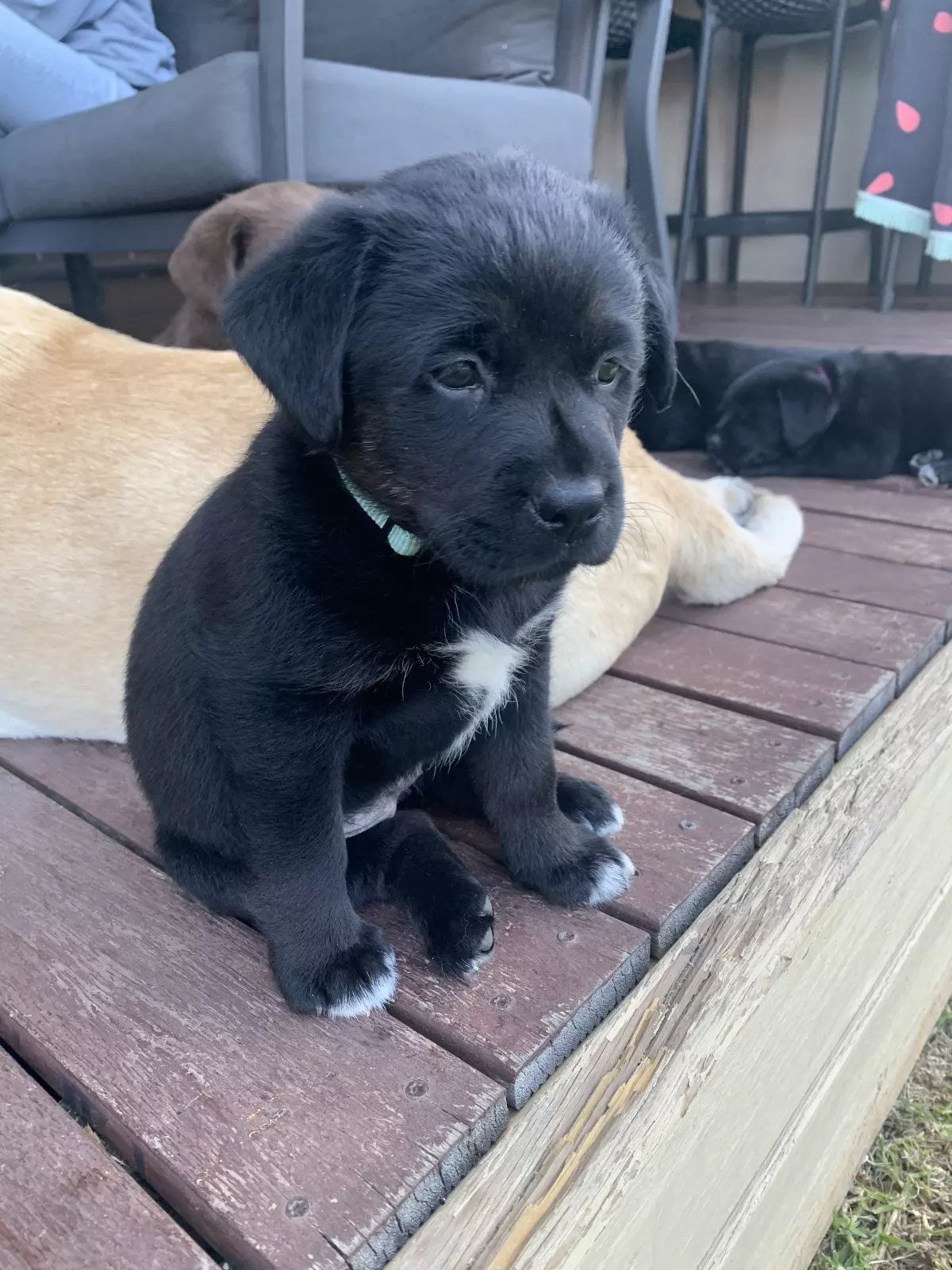 Mum is a purebred yellow Labrador and Dad is a black and white Border Collie. These pups have been vaccinated at 6 weeks, wormed regularly and microchipped. They are healthy, playful and growing well.