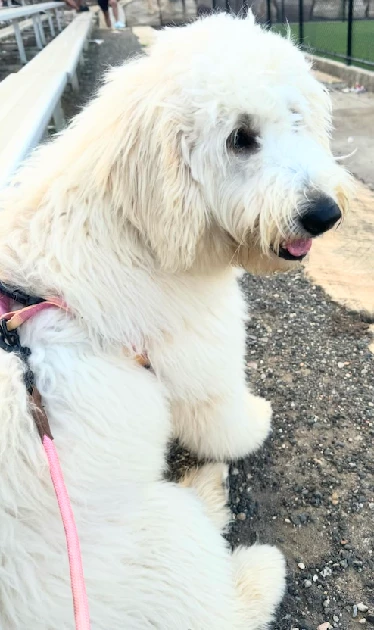 Missing poodle cross. While/cream colour, male, not desexed. Responds to Jon Snow.