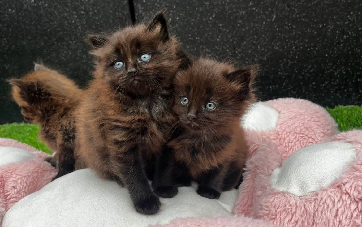 OUR LAST 2 FEMALE BROWN SMOKE AND BLACK GREY SMOKE Maine Coon x Ragdoll kittens are now 9.5 weeks old! Ready to go now!