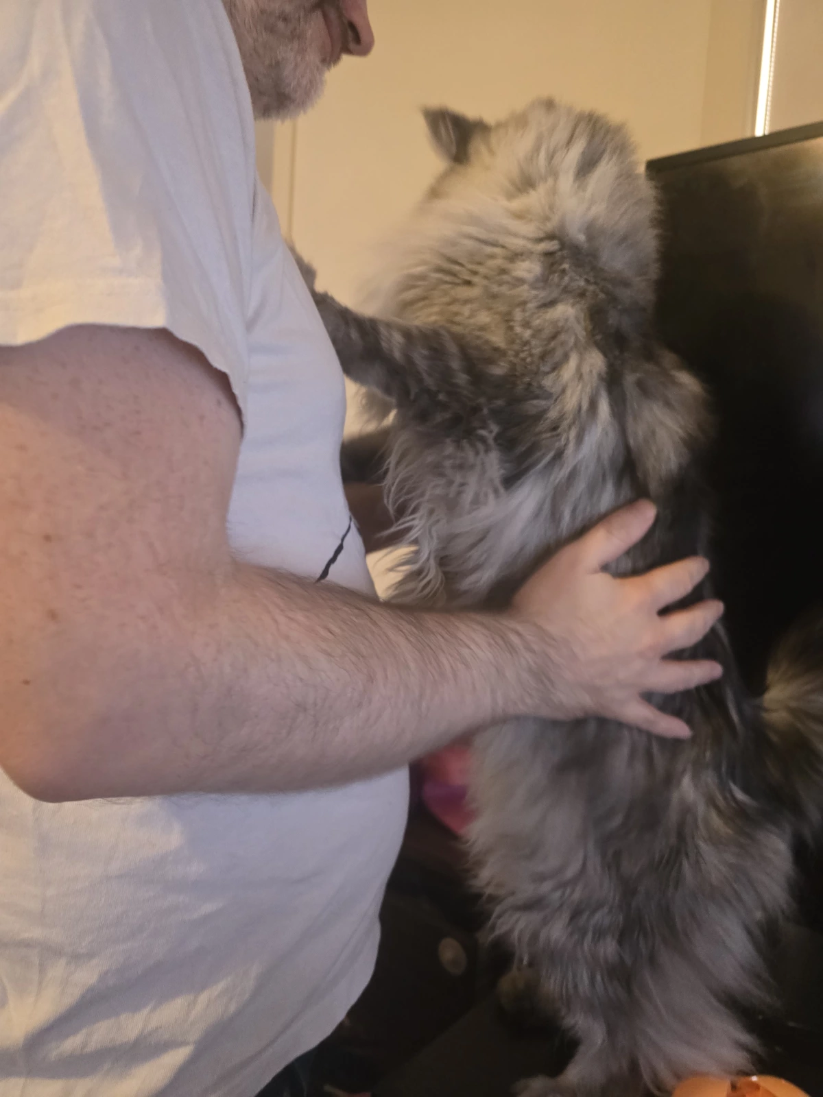 He’s a sweet boy once he gets used to you. He may take a little time to settle in, but once comfortable, he becomes very affectionate and enjoys being close to his person. Whenever my alarm goes off in the morning, he comes over for pats and starts purring, showing his gentle and loving nature.