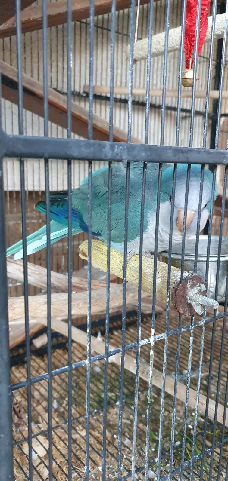 Male quaker parrot for sale, he recently lost his mate, would love a female companion, comes with cage.
